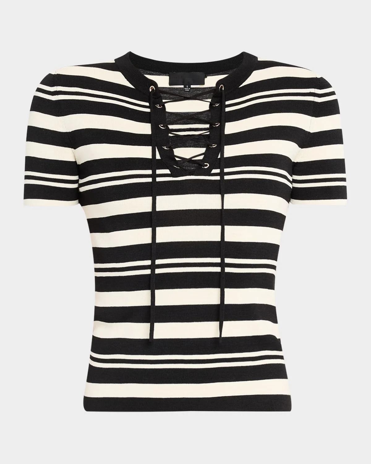 Oaklynn Stripe Lace-Up Silk T-Shirt