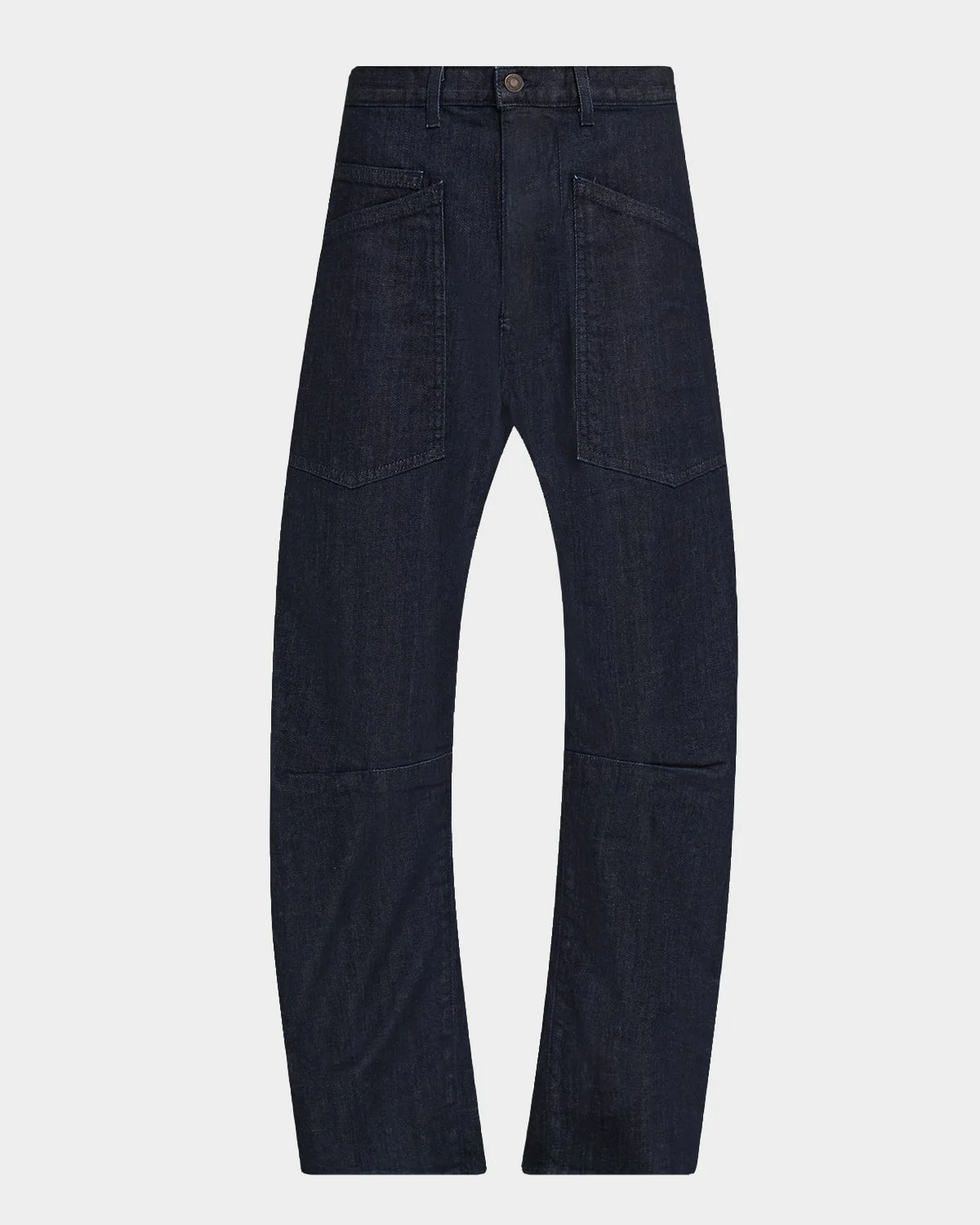 Nili Lotan "Shon" jeans with seam detail at knees Mid rise Fivepocket style Curved silhouette Cropped at the ankle Button/zip fly; belt loops Cotton/polyurethane Hand wash Made in USA