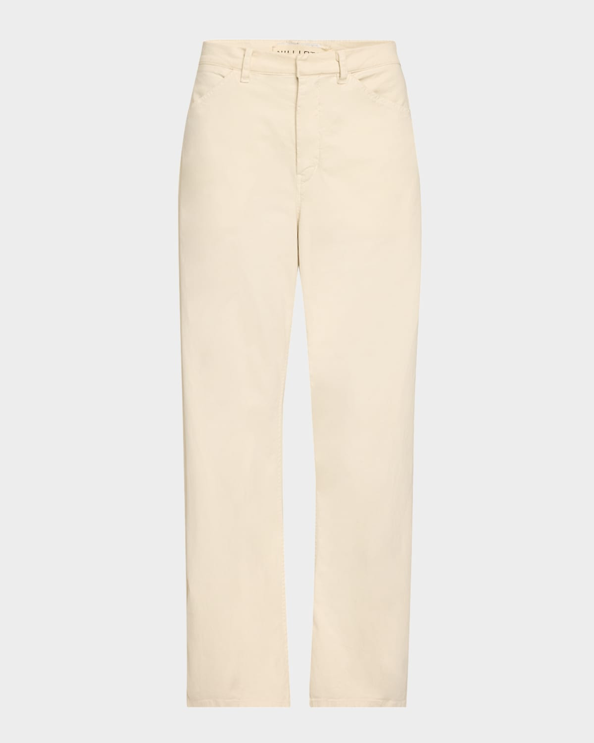- Nili Lotan "Tribeca" solid pants - Cropped at the ankle - Mid rise - Straight legs - Side slip pockets; back patch pockets - Button/zip fly; belt loops - Cotton/elastane - Made in USA
