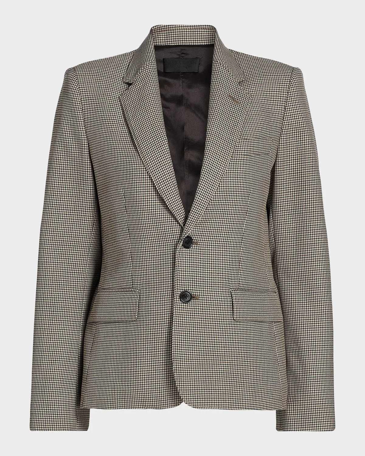 Ysee Houndstooth Wool Single-Breasted Blazer Jacket