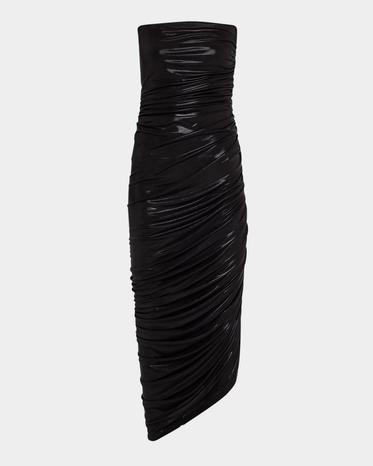 - Norma Kamali "Diana" draped gown with flattering ruched sides - Strapless neckline - Sleeveless - Built-in four-way stretch bodysuit - Asymmetric hem falls below the knee - Body-skimming fit - Slipover style - Polyester/spandex - Imported - Model is 5'10"/177cmModel is 5'10"/177cm. - Size Note: Item runs small, consider ordering a size up.