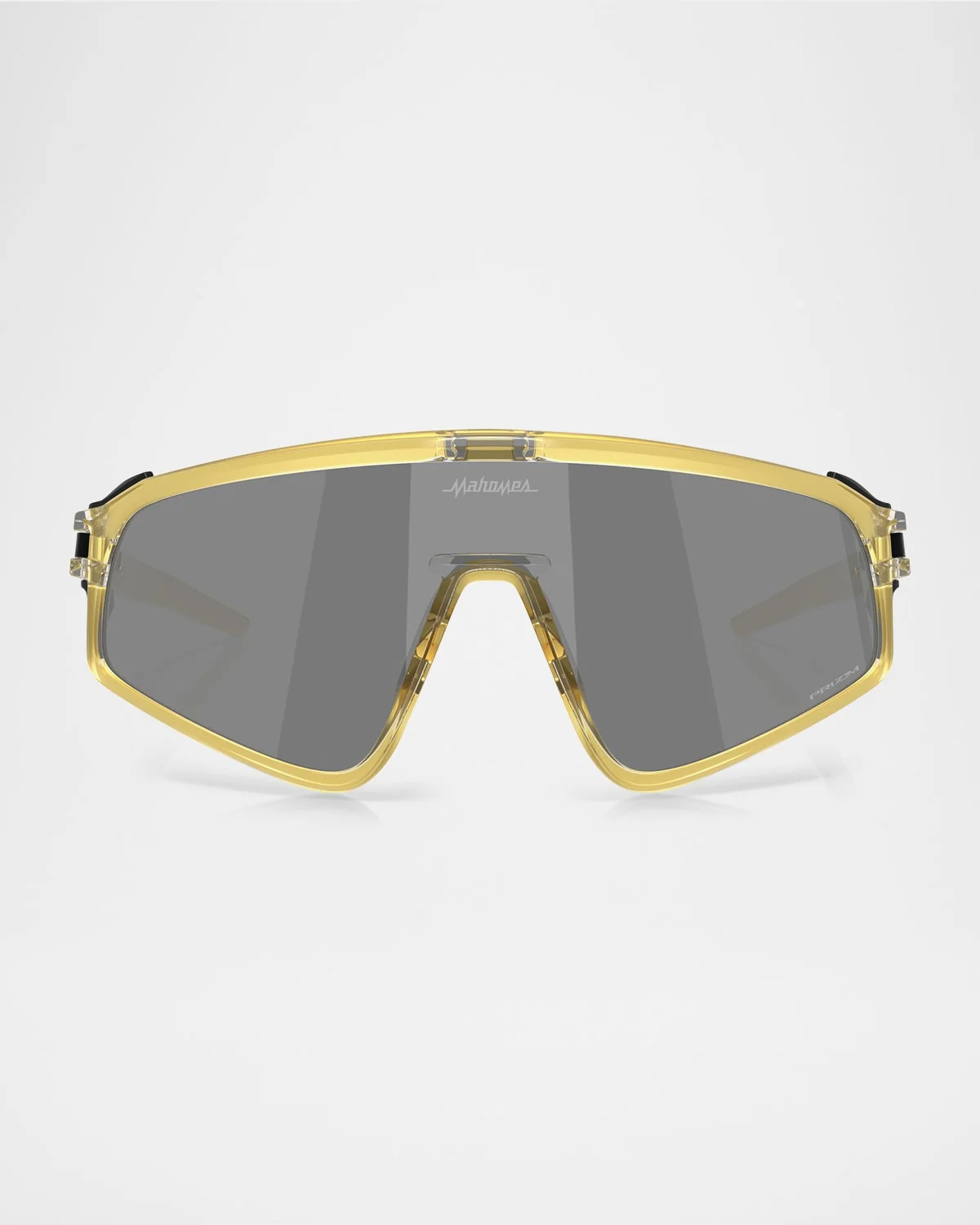 - Make the competition tougher, the lights brighter, a real champion still steps up their game, and the Patrick Mahomes II Signature Series Latch Panel always delivers. Sporting gold-colored paint throughout, this style is a not-so-subtle wink to records broken, expectations shattered and a pursuit for greatness so unrelenting, that it shines no matter what’s thrown your way. - Like a perfect Patrick Mahomes pass launched right into the end zone, the Signature Series Latch Panel combines precision with performance. The golden full rim, clear gloss, and glass-effect BiO-Matter™ frame brings strength and durability, while the three-point fit is all about balance and comfort. Remove the glare-blocking side shields and a convenient Latch mechanism allows you to clip the frame to your shirt or pants. That trophy-gold theme carries over onto the stems, which feature debossed red Ellipse logos – red for Patrick’s legendary football roots – plus gloss-black deco plates and repeated “M” logos. - Powered by color- and contrast-enhancing Prizm™ Lens Technology, with Prizm™ lens etching and a Mahomes logo etch, the Patrick Mahomes II Signature Series Latch Panel comes in an exclusive logo-embellished box sleeve and microbag. - DESIGNED TO EXPLORE: Full rim, shield lens design inspired by the original Eyeshade - LIGHTWEIGHT AND DURABLE: Manufactured with BiO-Matter™ frame material made from bio-materials having at least 56% bio-based carbon content (representing the ratio of castor oil to fossil sources) - BLOCK DISTRACTIONS: Removable side shields are designed to block glare and keep faces protected - STOW YOUR EYEWEAR: The latch mechanism lets you clip your glasses to your shirt, allowing you to safely stow your eyewear and move seamlessly through your day - SECURE YOUR GEAR: comes with an eyewear leash that snaps on to the end of your frames to help keep them securely in place. - NO-SLIP GRIP: Unobtainium® nose pads and ear socks provide no-slip grip when wet to help increase retention - SEE MORE DETAILS: Prizm™ Lens Technology is engineered to enhance color and contrast to see more detail - 100% UVA/UVB protection - Made in USA - Proposition 65 warning for California residents