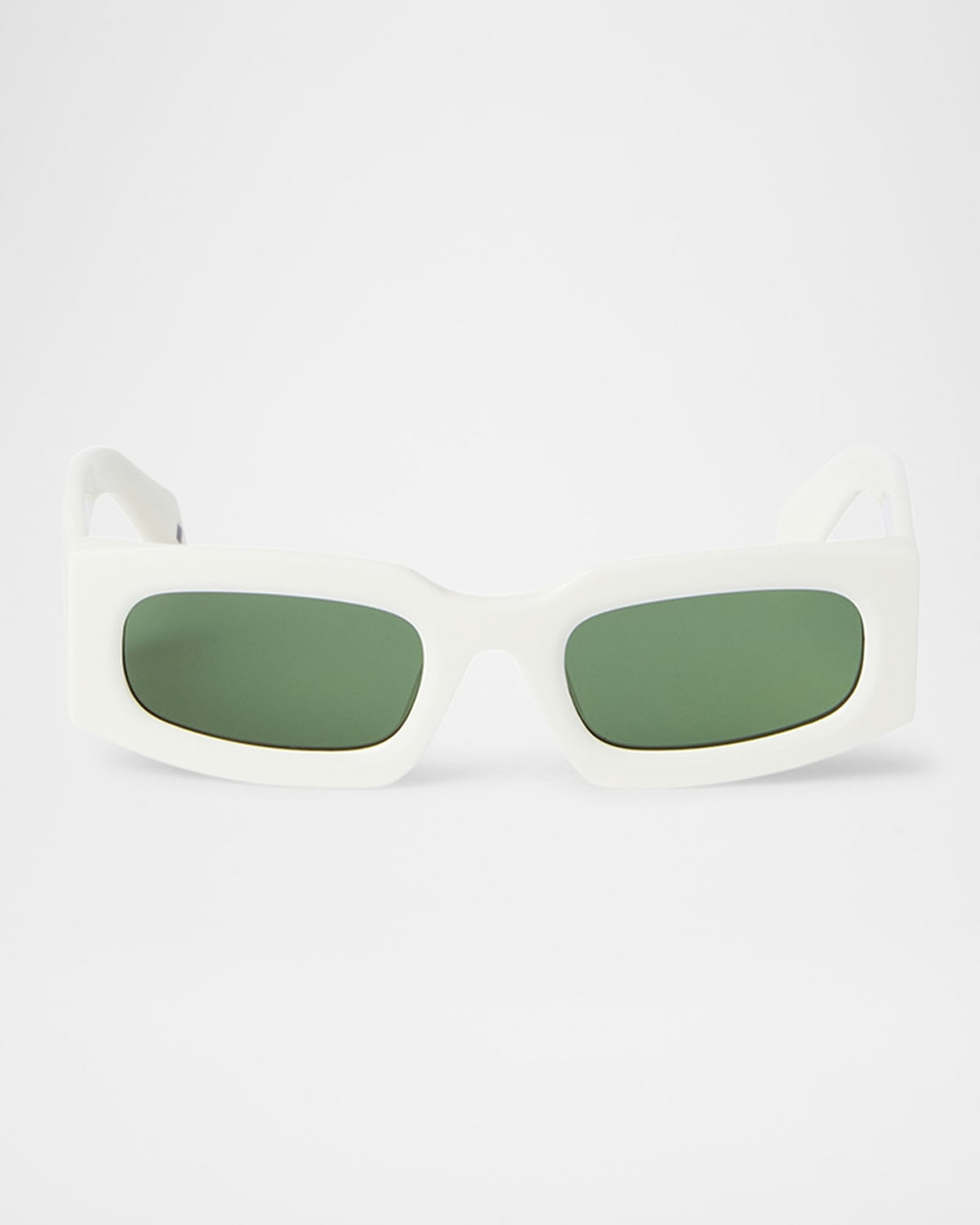 - Off-White "Cary" oval sunglasses in acetate - Eye/bridge/temple (in mm): 52-22-145 - Solid lenses - Saddle nose bridge - Wide, tapered arms - Classic arrow motif at the temples - Acetate - 100% UVA/UVB protection - Made in Italy - Proposition 65 warning for California residents
