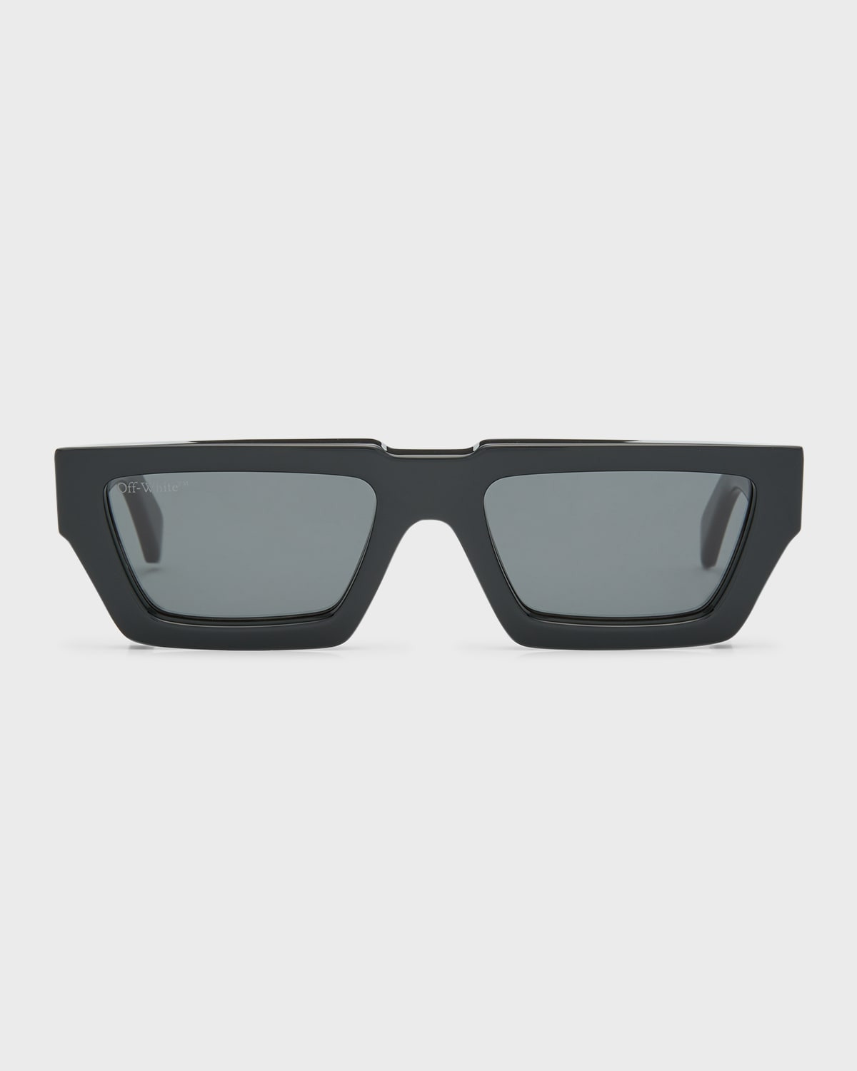 - Off-White "Manchester" rectangle sunglasses in acetate - Lens/bridge/temple (in mm): 54-19-140 - Solid lenses; logo on corner - Saddle nsoe bridge - Thin, tapered arms - Hand wash, wipe clean - 100% UVA/UVB protection - Made in Italy - Proposition 65 warning for California residents - This product contains perfluoroalkyl and polyfluoroalkyl substances (PFAS). For more information, please visit the manufacturer’s website.