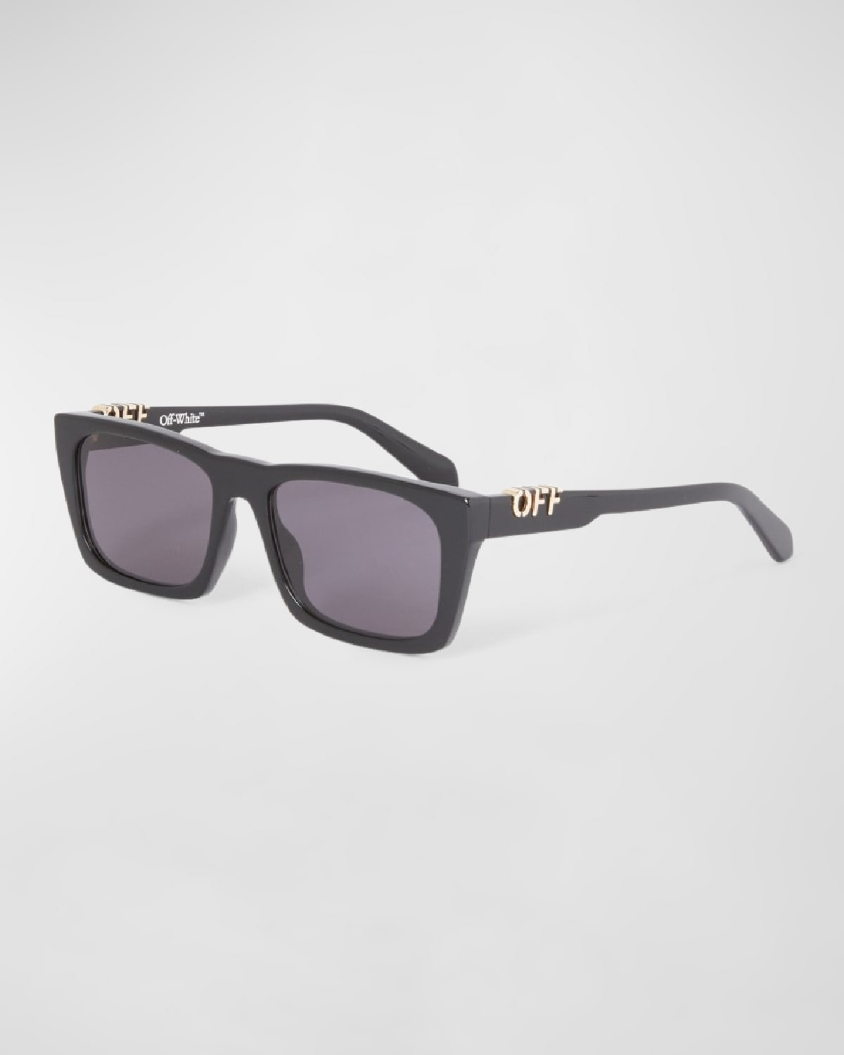 - Off-White "Albany" rectangle sunglasses in acetate - Lens/bridge/temple (in mm): - 56-18-145 - Solid-color lenses - Saddle nose bridge - Logo hardware on the temples - Thin, tapered arms - Curved temple tips - Acetate - 100% UVA/UVB protection - Made in Italy - Proposition 65 warning for California residents