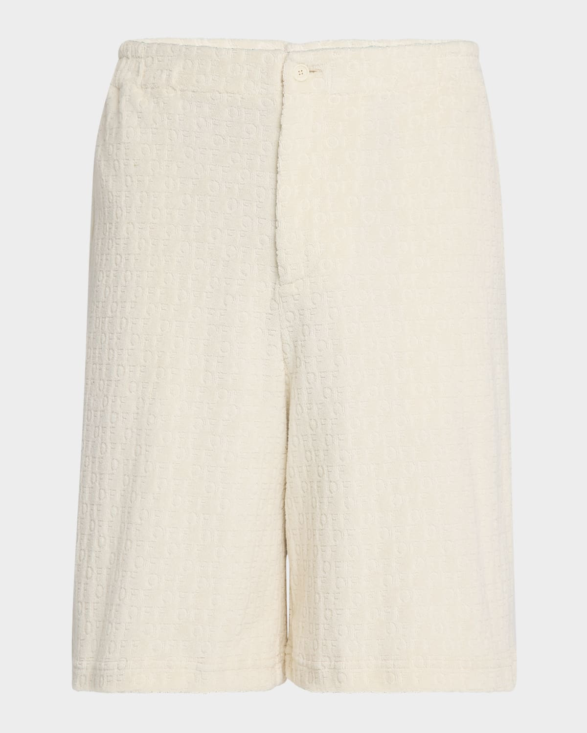- Off-White bowling shorts crafted from embossed logo terry cloth - Elasticized waist - Regular rise - Side slip pockets - Back patch pockets - Loose fit - Pull-on style - Cotton - Made in Italy