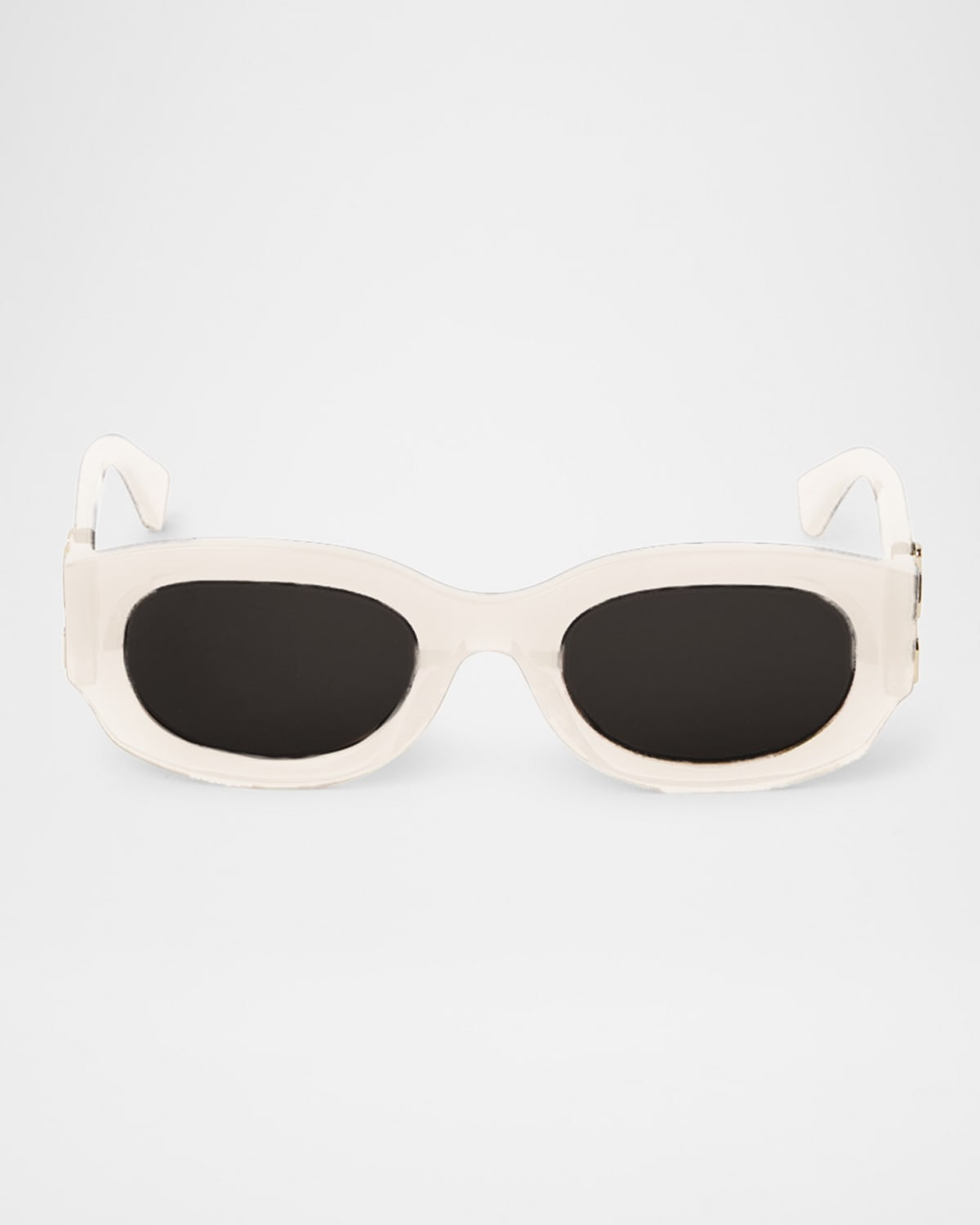 - Off-White "Palmer" oval sunglasses in acetate - Eye/bridge/temple (in mm): 52-23-145 - Solid lenses - Saddle nose bridge - Thick, tapered arms - Signature arrow detail at the temples - Acetate - 100% UVA/UVB protection - Made in Italy - Proposition 65 warning for California residents