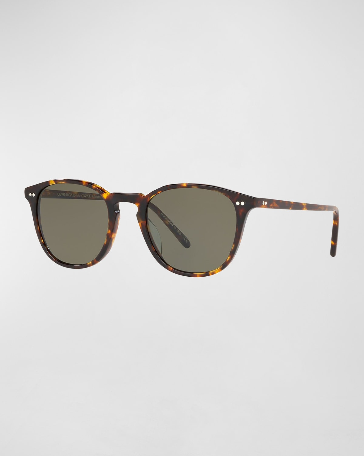 - Oliver Peoples "Forman L.A." sunglasses in tortoiseshell acetate. - Lens/bridge/temple (in mm): 51-21-145. - Round lenses. - Thin, tapered arms. - 100%25 UVA/UVB protection. - Made in Italy.