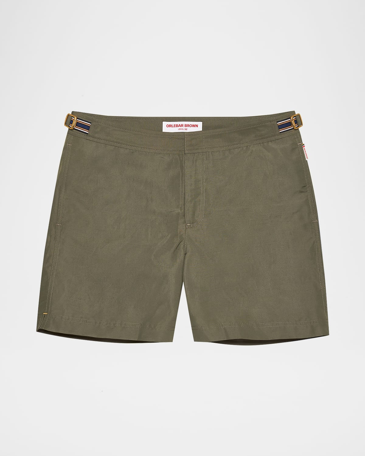 - Orlebar Brown "Bulldog" solid swim shorts - Approx. 6" inseam; 6" rise - Adjustable side fasteners with striped taping - Concealed snap closure - Side on-seam pockets - Relaxed legs - Tailored mid-length fit - Mesh lining - Polyester/linen - Machine wash cold - Made in Portugal