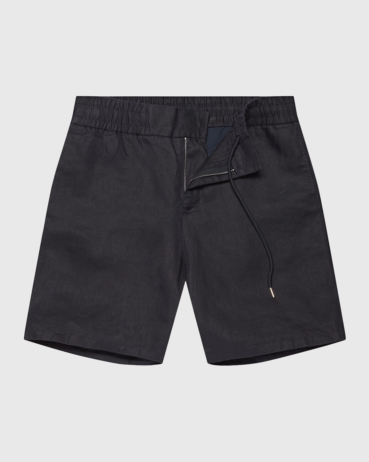 - Orlebar Brown "Cornell" shorts in garment-washed slub linen - Elasticized waist - Zip fly with tubular drawcord - Side slip pockets - Back welt pockets - Tailored fit - Dry clean - Made in Portugal - Model is 6'1"/185cm.