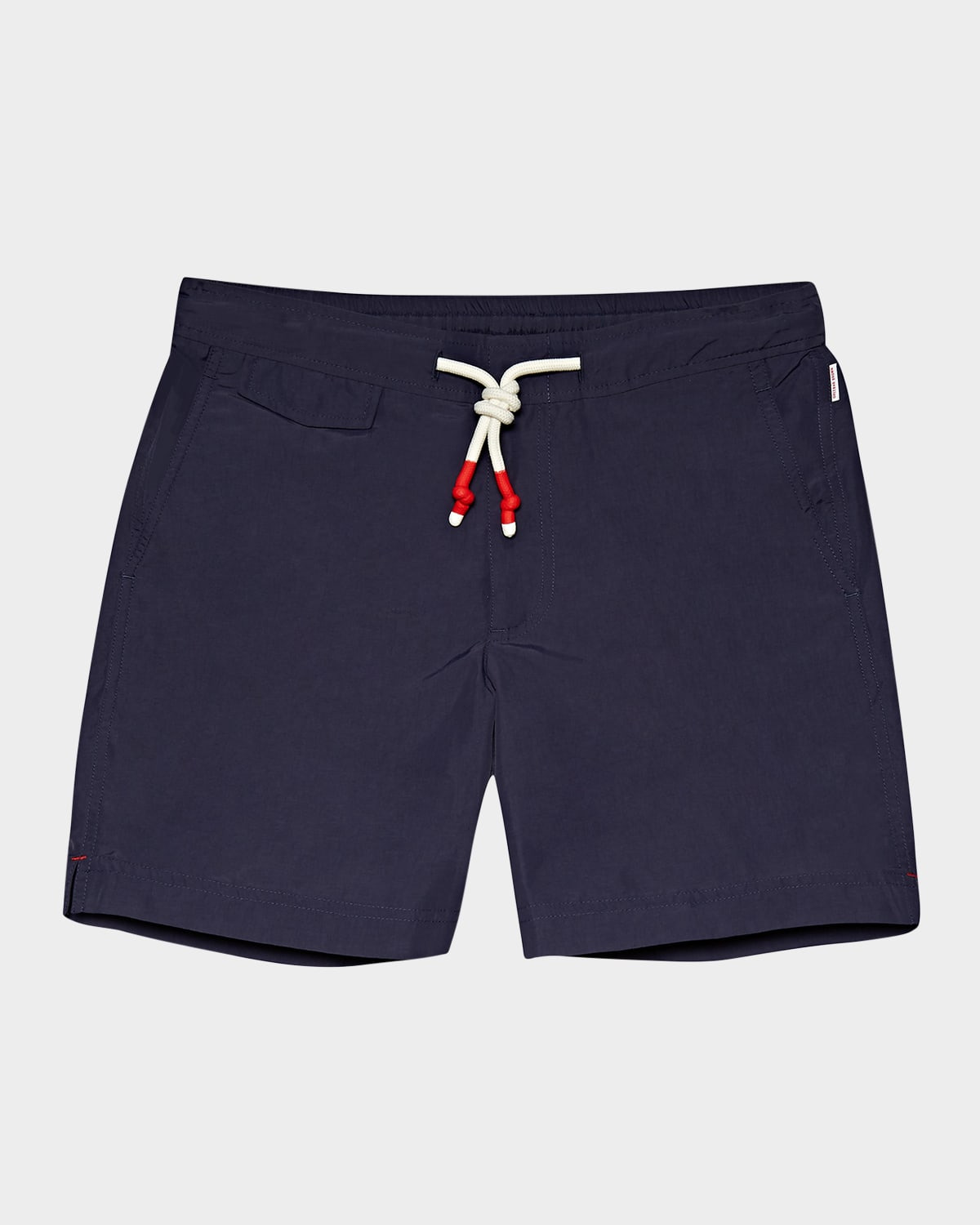 - Orlebar Brown swim shorts in durable nylon fabric - Approx. 6" inseam - Elasticized drawstring waistband - Regular rise; flat front - Flap pocket at front - Side slant pockets - Vented sides - Mid-thigh length - Classic fit - Polyamide - Nylon lining - Machine wash cold - Made in Portugal - Model is 6'1"/185cm.