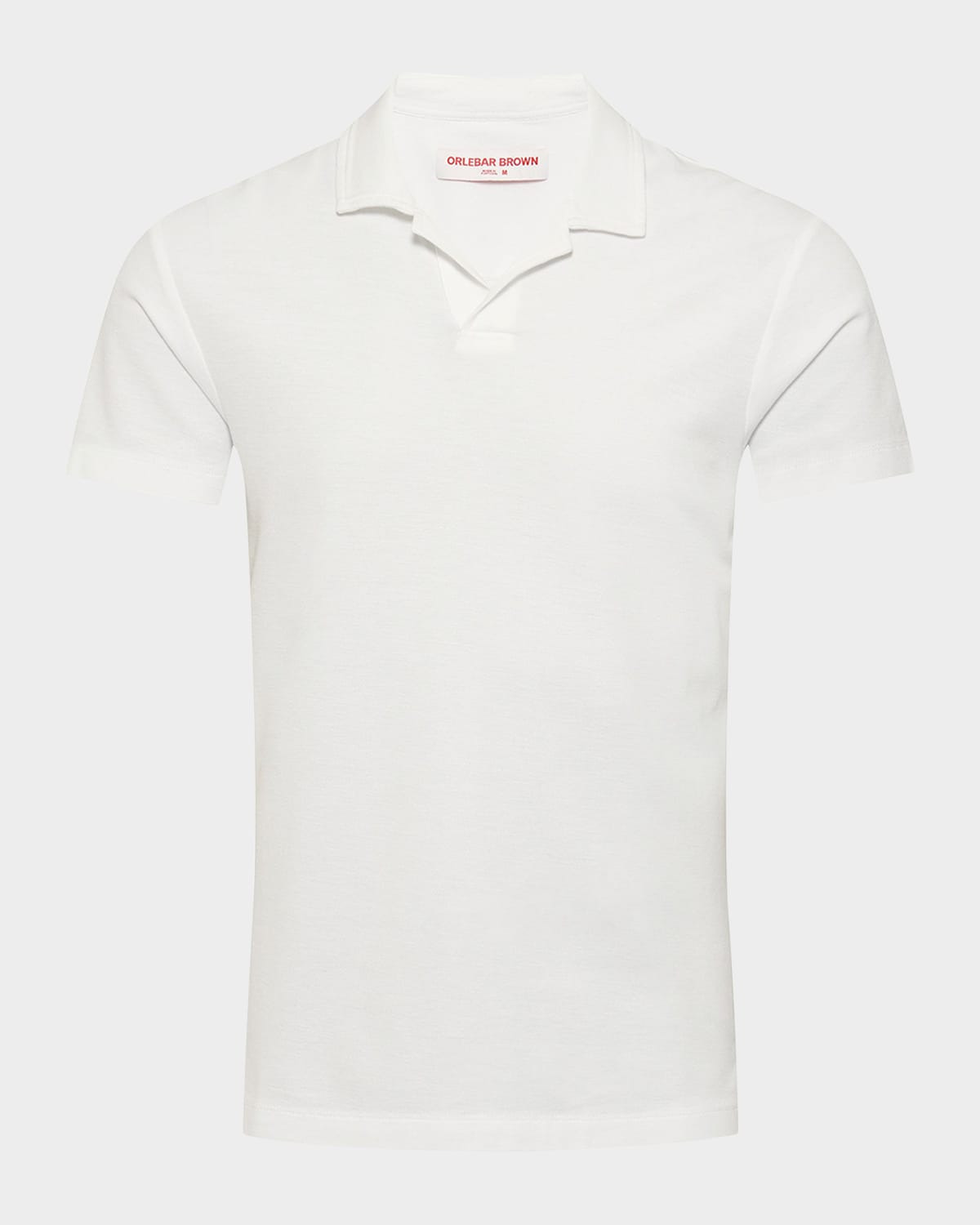 - Orlebar Brown "Felix" polo shirt in solid cotton-modal pique - Open collar - Short sleeves - Pullover style - Machine wash cold - Made in Portugal - Model is 6'1"/185cm.