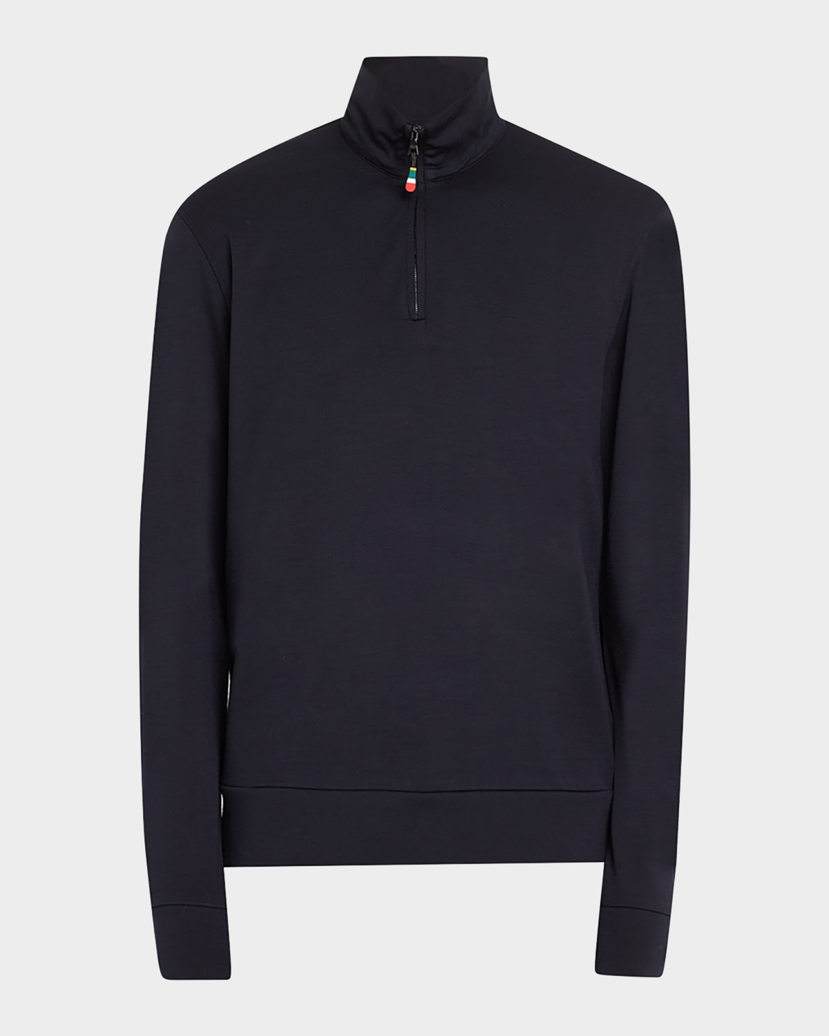 - Orlebar Brown "Isar" solid sweatshirt with signature stripe detail - Stand collar - Quarter-zip placket - Long sleeves - Banded cuffs and hem - Merino wool - Machine wash cold - Made in Portugal