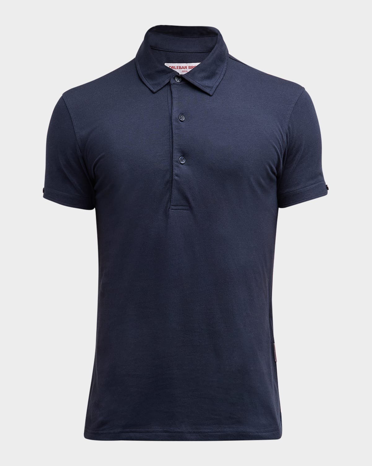 - Orlebar Brown "Sebastian" solid polo shirt - Spread collar; three-button placket - Short sleeves - Classic fit - Pullover style - Cotton/silk - Machine wash cold - Made in Portugal - Size Note: • Model Height: 6'3"/ waist 32”/ inseam 34"/ chest 40 • Model is wearing size Medium
