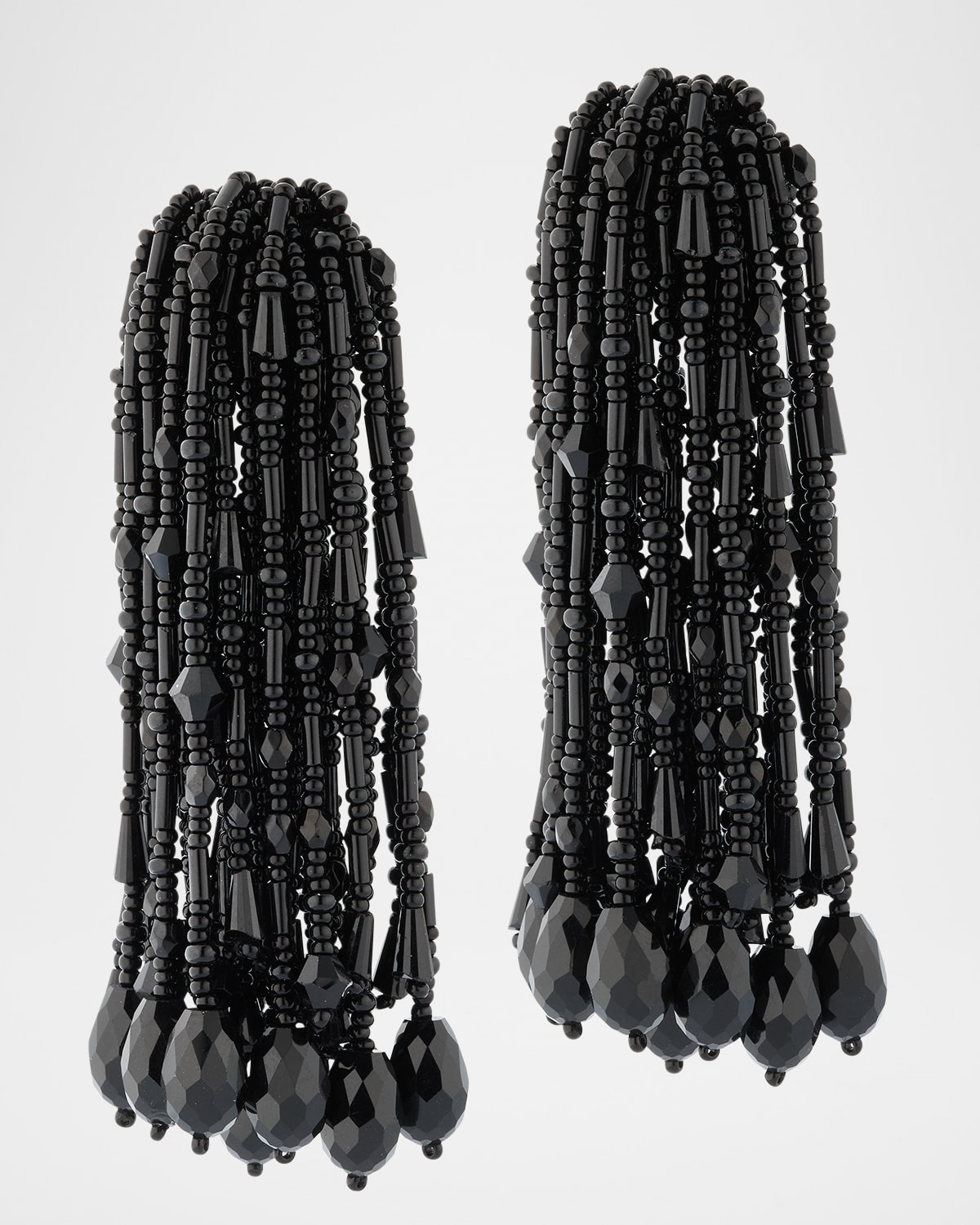 - Oscar de la Renta earrings - Approx. 3.5"L - Gold-tone metal - Faceted glass beads - Clip-on backs - Imported