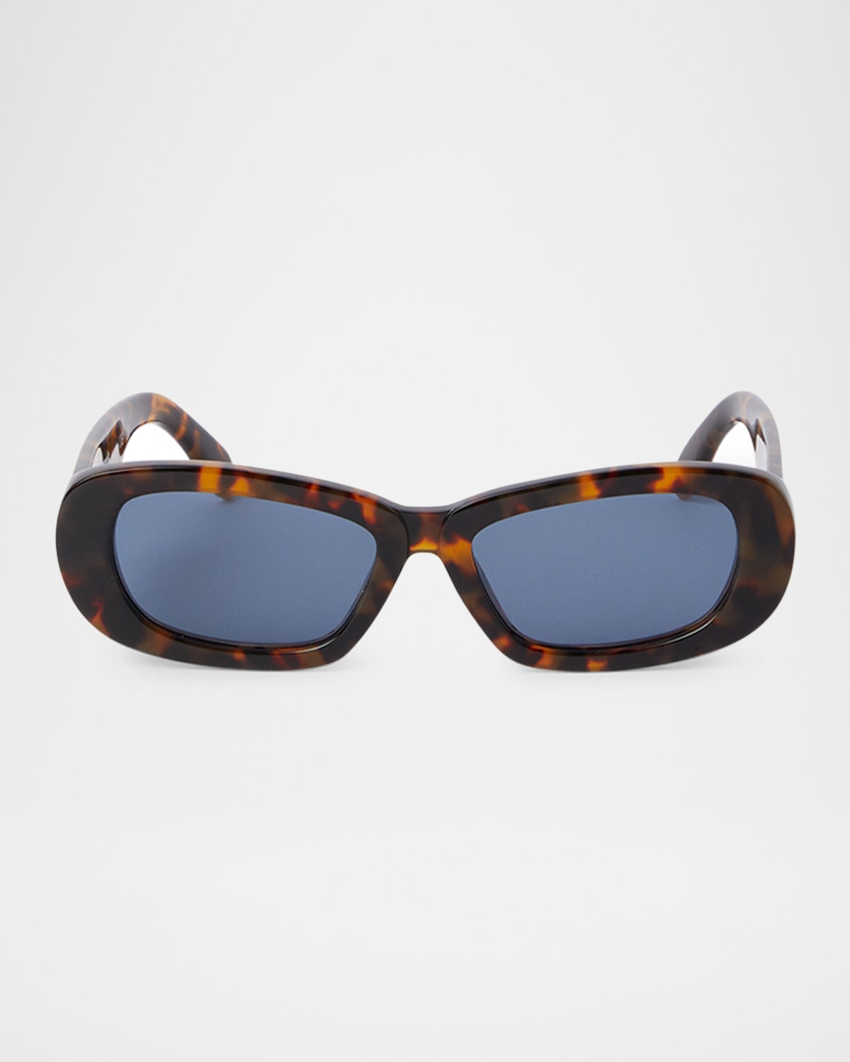 - Palm Angels "Dana" rimmed oval sunglasses in acetate - Eye/bridge/temple (in mm): 53-17-145 - Solid lenses - Saddle nose bridge - Thick, tapered arms - Goldtone classic logo at the temples - Acetate - 100% UVA/UVB protection - Made in Italy - Proposition 65 warning for California residents