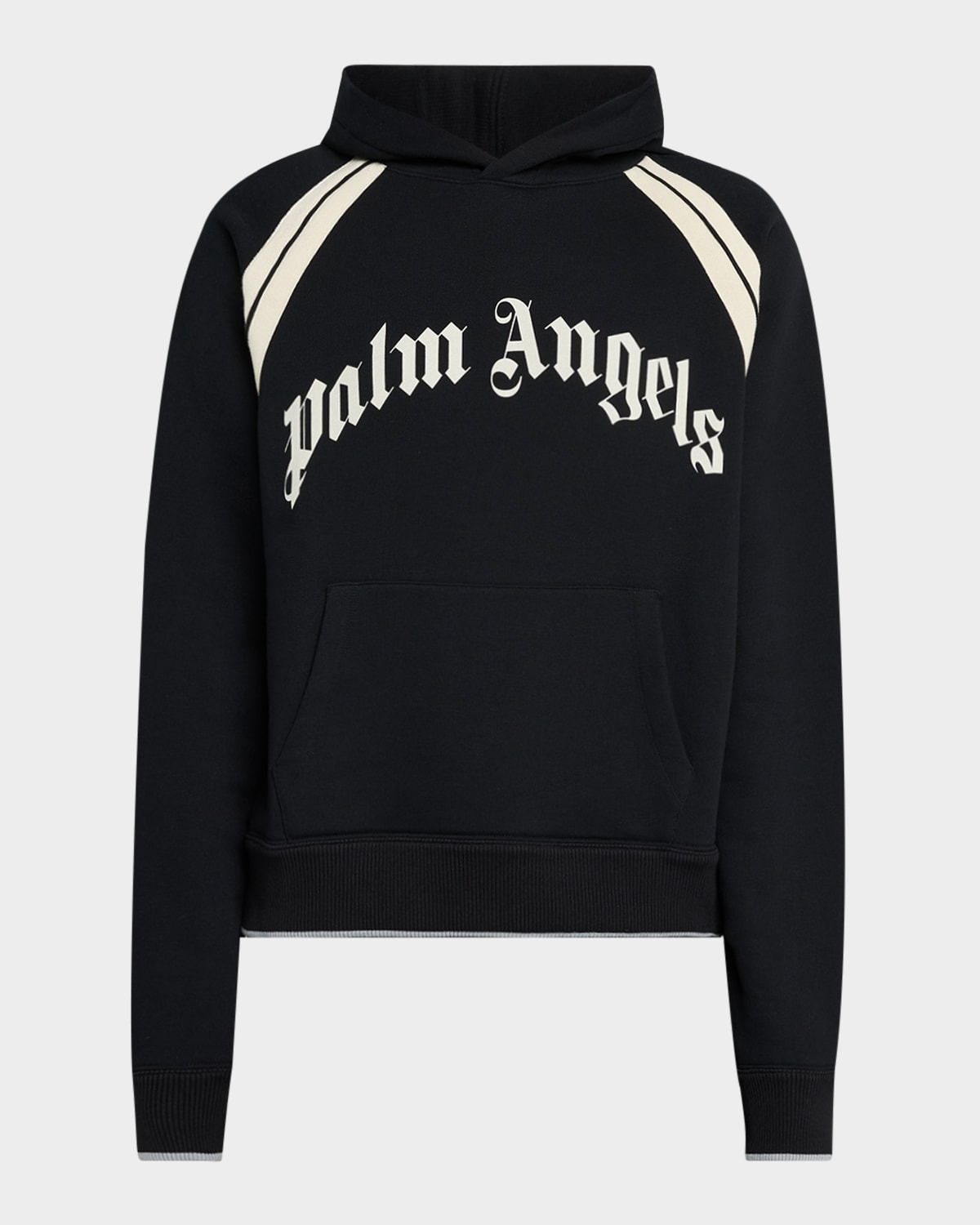 - Palm Angels hoodie with track stripes - Fixed hood - Curved logo across front - Kangaroo pocket - Long sleeves - Ribbed cuffs and hem - Pullover style - Cotton/polyester - Imported