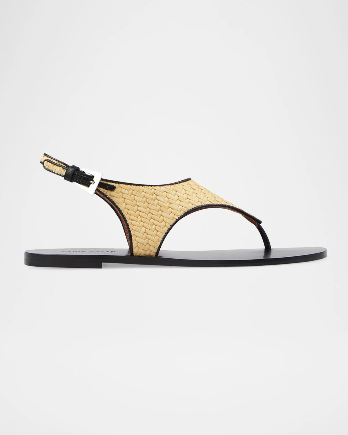 - Paris Texas "Amalfi" woven raffia sandals with contrast leather trim - 0.25 in / 10 mm flat heel - Thong strap - Adjustable slingback buckle - Leather outsole - Lining: Goat leather - Made in Italy