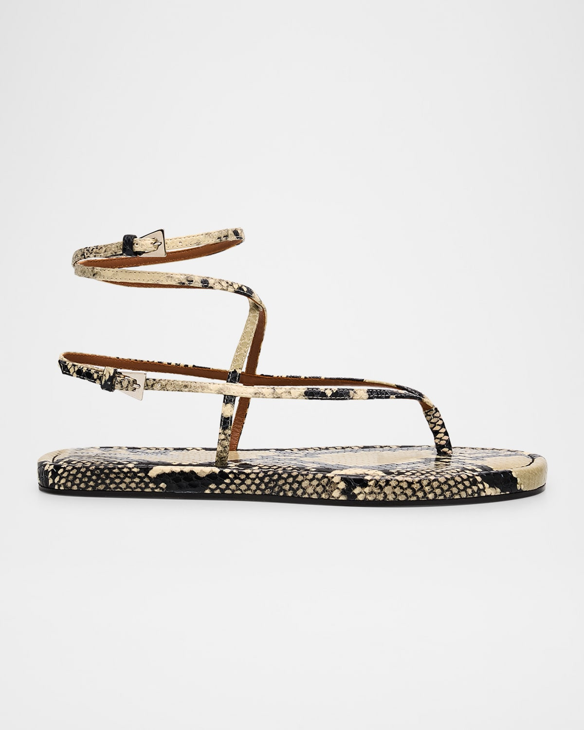 - Paris Texas "Hydra" strappy snake-embossed leather sandals - 0.25 in / 10 mm flat heel - Thong strap - Crisscross ankle strap - Adjustable slingback strap - Leather outsole - Lining: Leather - Made in Italy