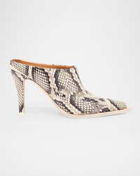 - Partlow "Kelley" python-embossed leather western mule pumps - 3.75 in / 95 mm stiletto heel - Pointed toe - Slide style - Logo-embossed metal heel insert - Leather outsole - Lining: Leather - Made in Italy