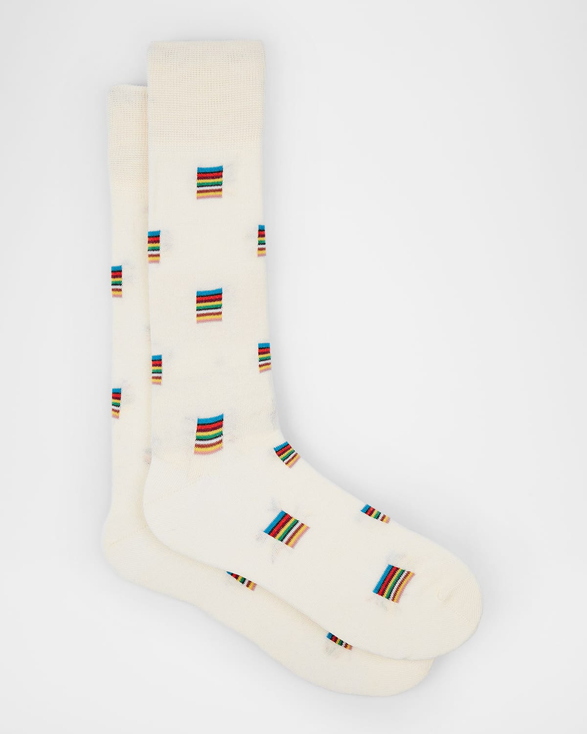Paul Smith "Jonas" crew socks feature an allover signature stripe block design Ribbed cuffs to prevent slipping Cotton/nylon/elastane Machine wash cold Made in Italy