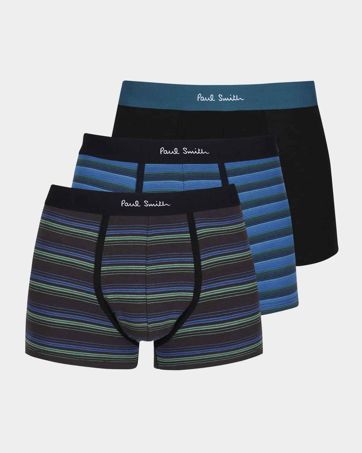 Paul Smith set of three boxer briefs showcasing the distinctive stripes in a mixed design Elasticized logo waistband Organic cotton/elastane Machine wash cold Imported