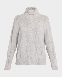 Peserico maxi cableknit sweater crafted of baby suri alpaca and fleece wool yarn, embellished with microsequins for a touch of shine. Approx. 25"L from shoulder to hem Ribbed finishes on the collar, cuff, and hem Turtleneck Long sleeves Dropped shoulders Loose fit Pullover style Nylon/polyamide/wool/virgin wool Dry clean, machine wash Made in Italy