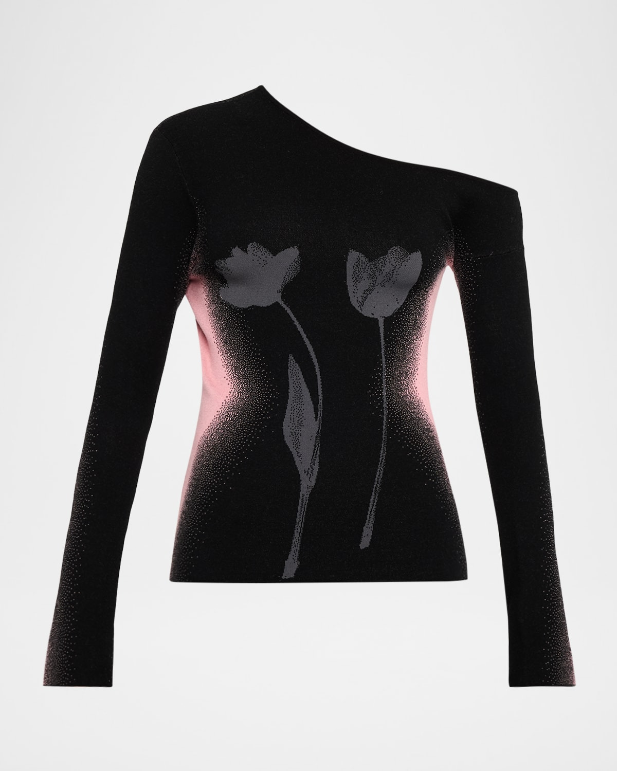 - PH5 "Melia" knit top printed with front floral stems and a flattering cinched waist effect - One-shoulder neckline - Long sleeves - Slim fit - Hip length - Pullover style - Viscose - Machine wash cold - Imported