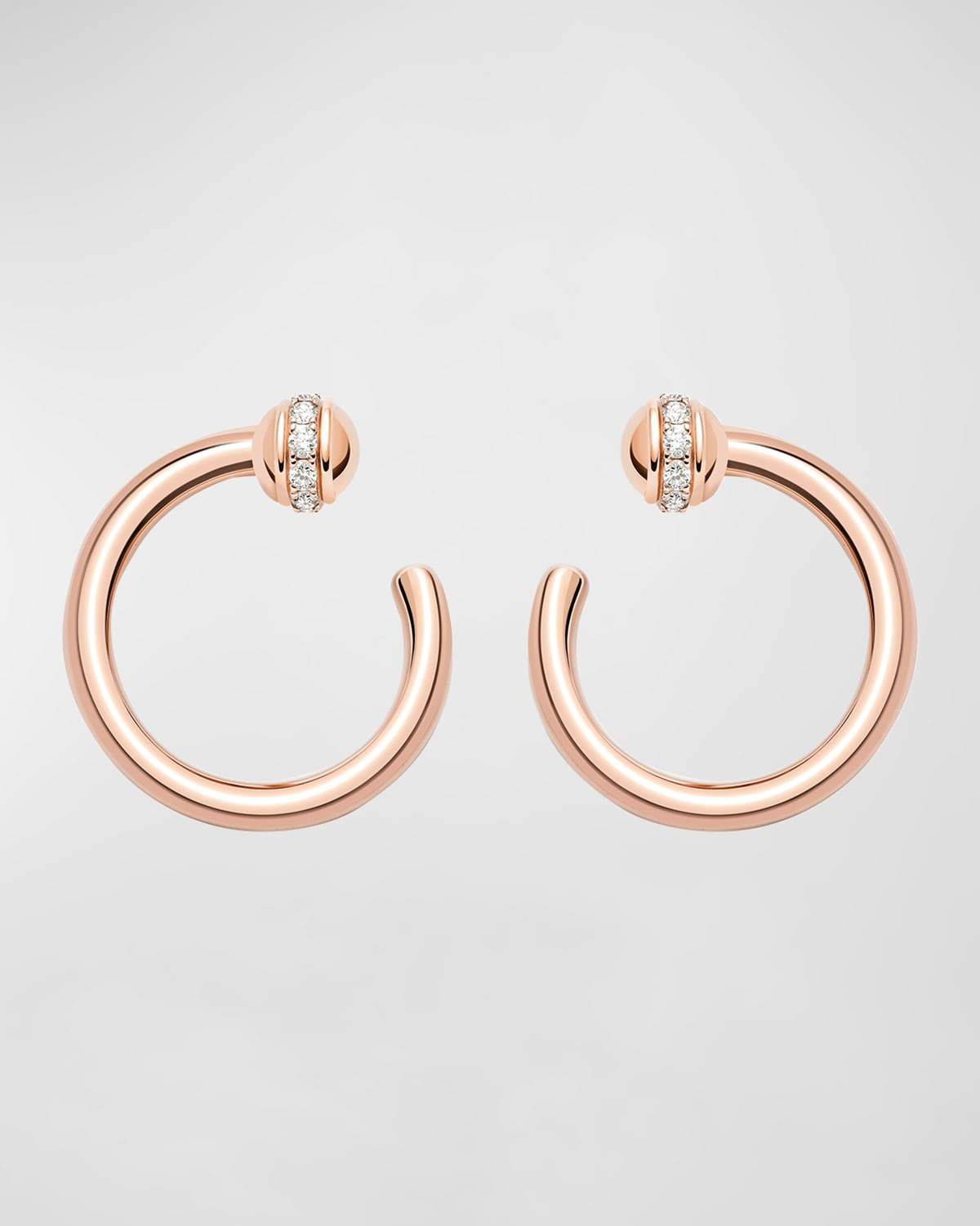 Possession hoop earrings from PIAGET. Polished 18karat rose gold hardware. Frontfacing hoops with diamond trim. 20 brilliantcut white diamonds; 0.20 total carat weight. Approx. 0.82"L (20.8mm); 0.74"W (18.9mm). Post backs for pierced ears.