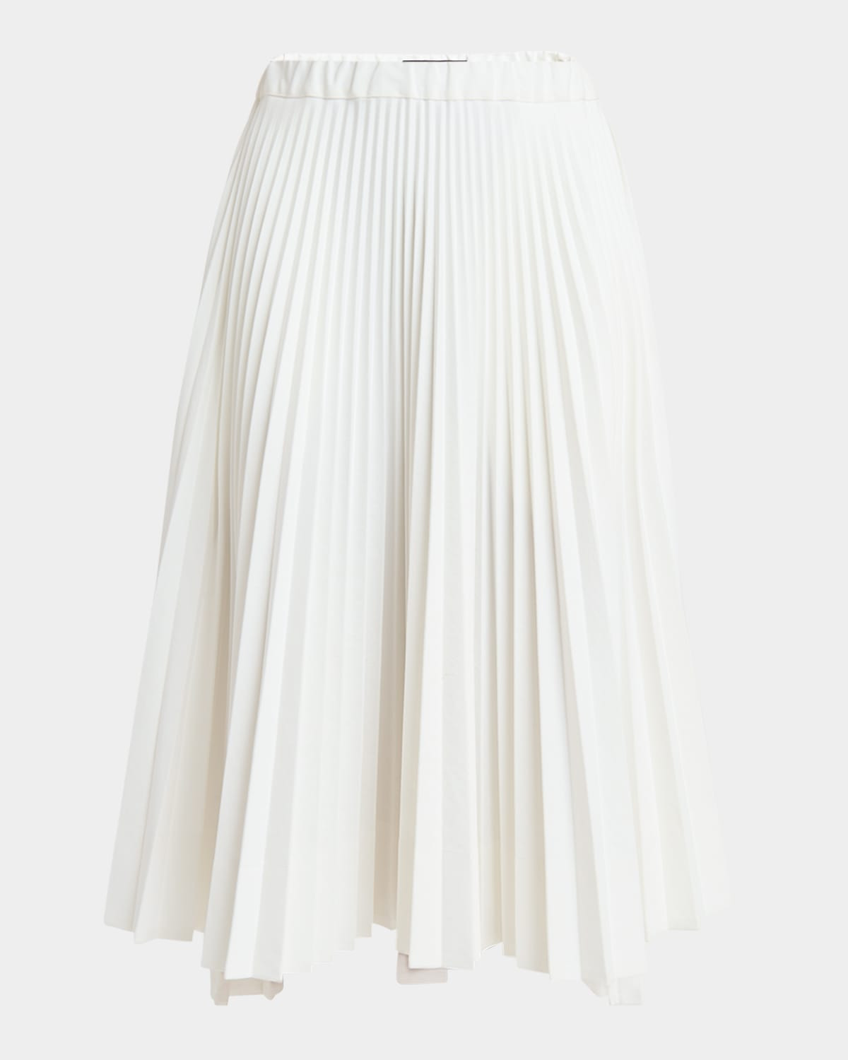Plan C skirt finished with pleating and an elasticized waistband Mid waist Hem falls below the knee Aline silhouette Pullon style Polyester/cotton/linen Lining: Cotton/cupro Made in Italy