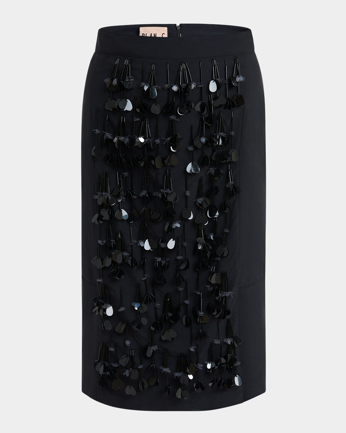 Plan C skirt with sequin embellishment High waist Midi length Straight silhouette Back zip Nylon/polyamide Made in Italy