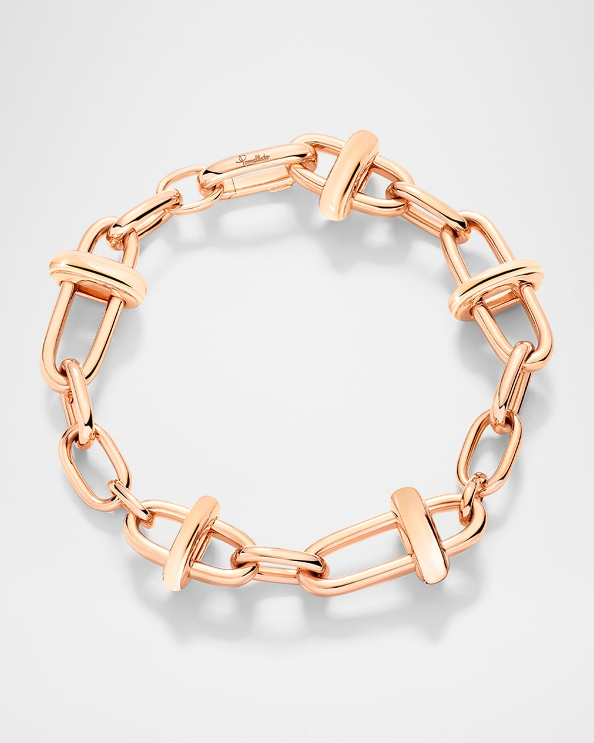 - Born from the idea to embody the essence of Pomellato's design philosophy that exudes strength, Iconica celebrates the maison's rich heritage of Milanese goldsmithing excellence. Each piece in the Iconica Collection is a tribute to the unparalleled skill of Pomellato's master craftsmen. Generations of expertise come alive in the clean lines and rounded, sculptural forms that define Iconica's unique powerful character. - Pomellato chain bracelet - 18-karat rose gold - Made in Italy