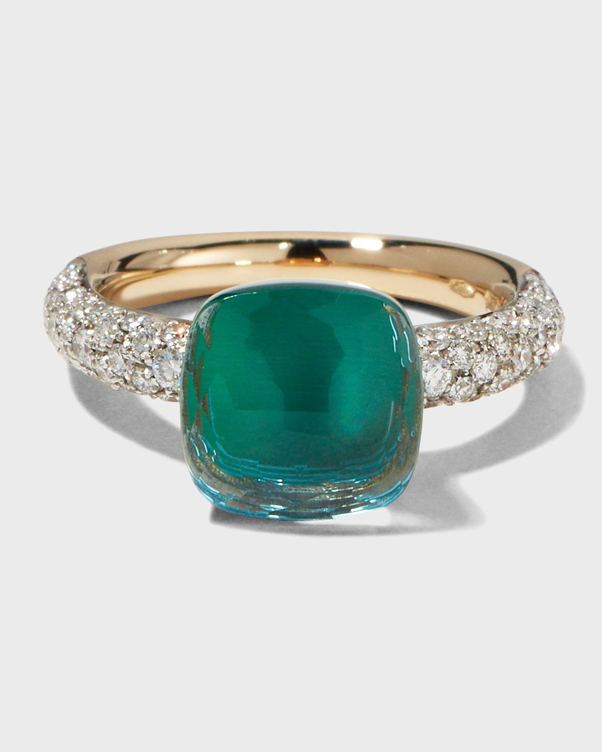 - Pomellato ring - Approx. ring size 54 - 18-karat rose gold - Cushion-cut white topaz - Sides with 58 white diamonds - 0.70 total diamond carat weight - Made in Italy - Please note: - Rings are available in European sizes. For additional sizes, not listed online, please contact a Neiman Marcus store or sales representative directly.