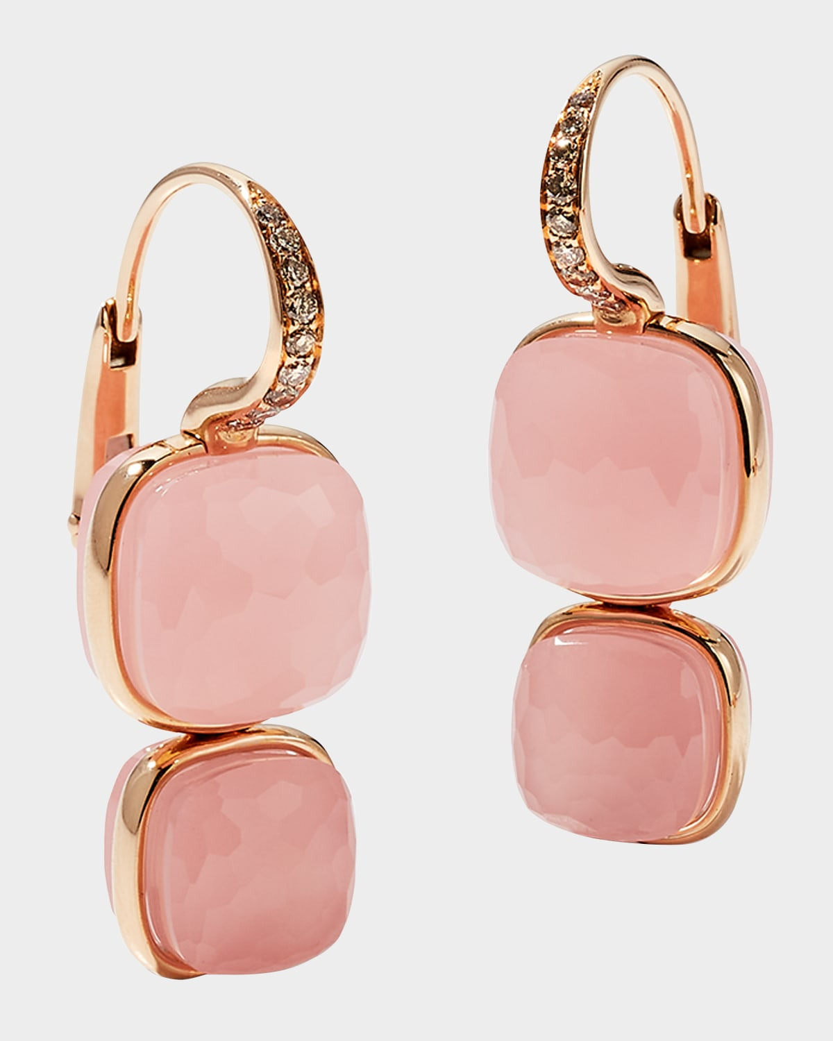 Pomellato earrings 18karat rose gold Diamonds at ear wire Rose quartz and chalcedony Diamond total carat weight: 0.20 Approx. 0.5"W x 1.25"L For pierced ears Made in Italy