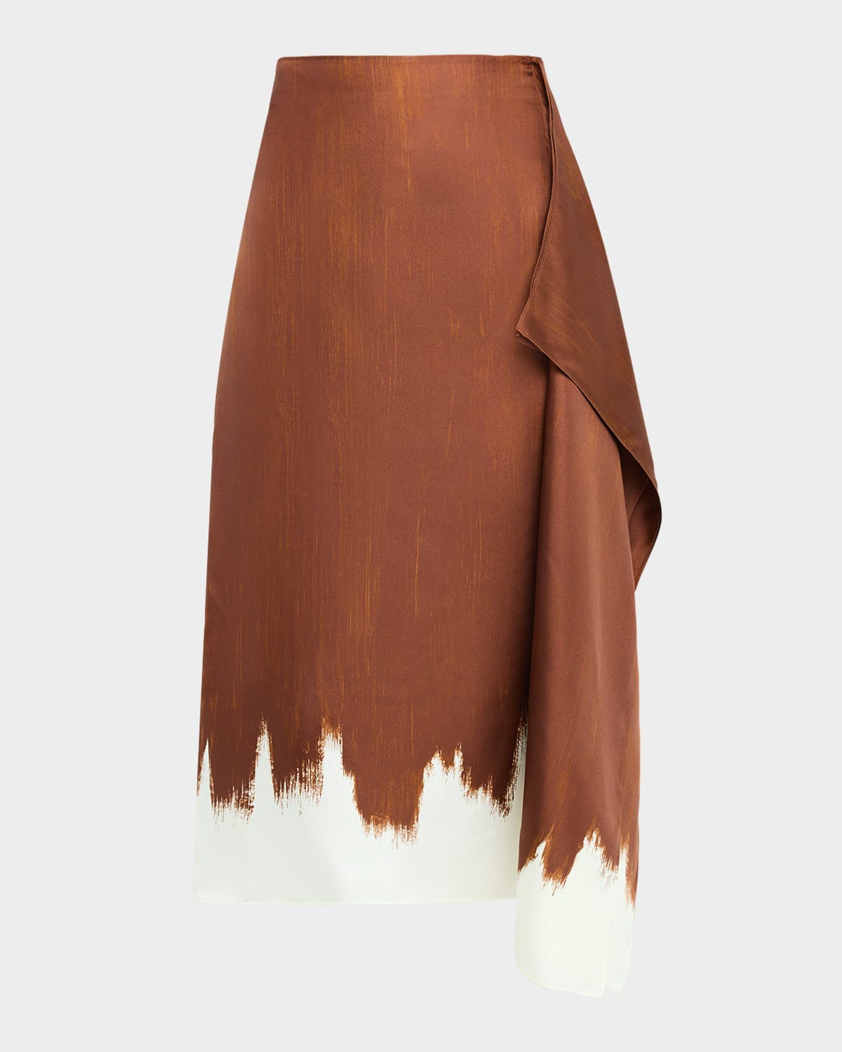 - Proenza Schouler "Amery" skirt crafted from double-printed silk twill with a draped side panel - Sits high on the waist - Hem falls below the knee - A-line silhouette - Silk - Unlined - Imported