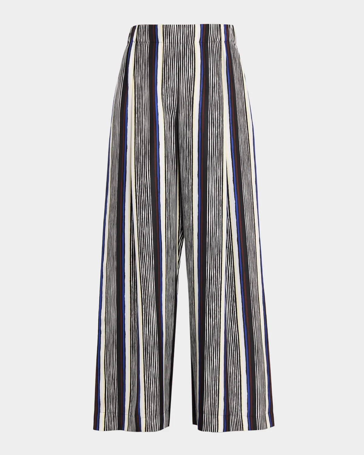 Crafted from luxurious silk in a vibrant stripe print, the "Amira" pants by Proenza Schouler feature an elasticized waistband for effortless comfort. Hgih rise Side seam pockets Wide legs Full length Pull-on style & nbsp; Silk Dry clean Imported