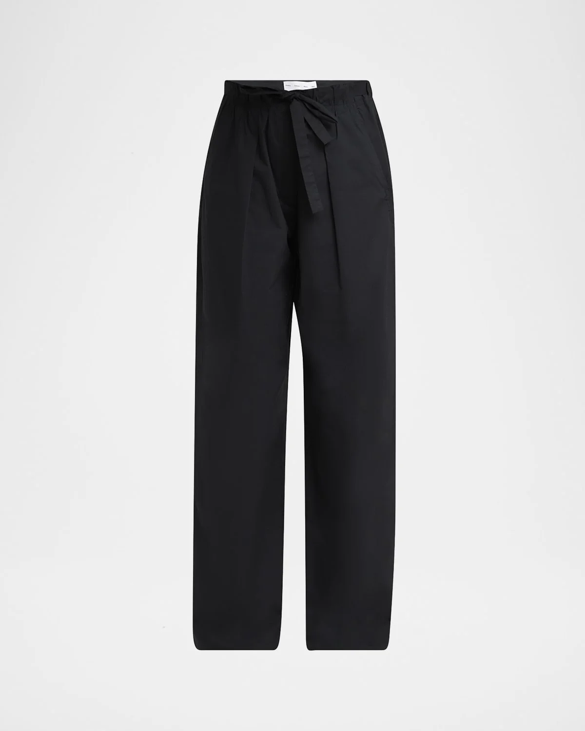 - Proenza Schouler White Label "Barrett" stretch poplin pants featuring a self-tie waist - High rise - Drawstring waistband - Side pockets - Loose, straight legs - Full length - Pull-on style - Cotton/spandex - Dry clean - Imported
