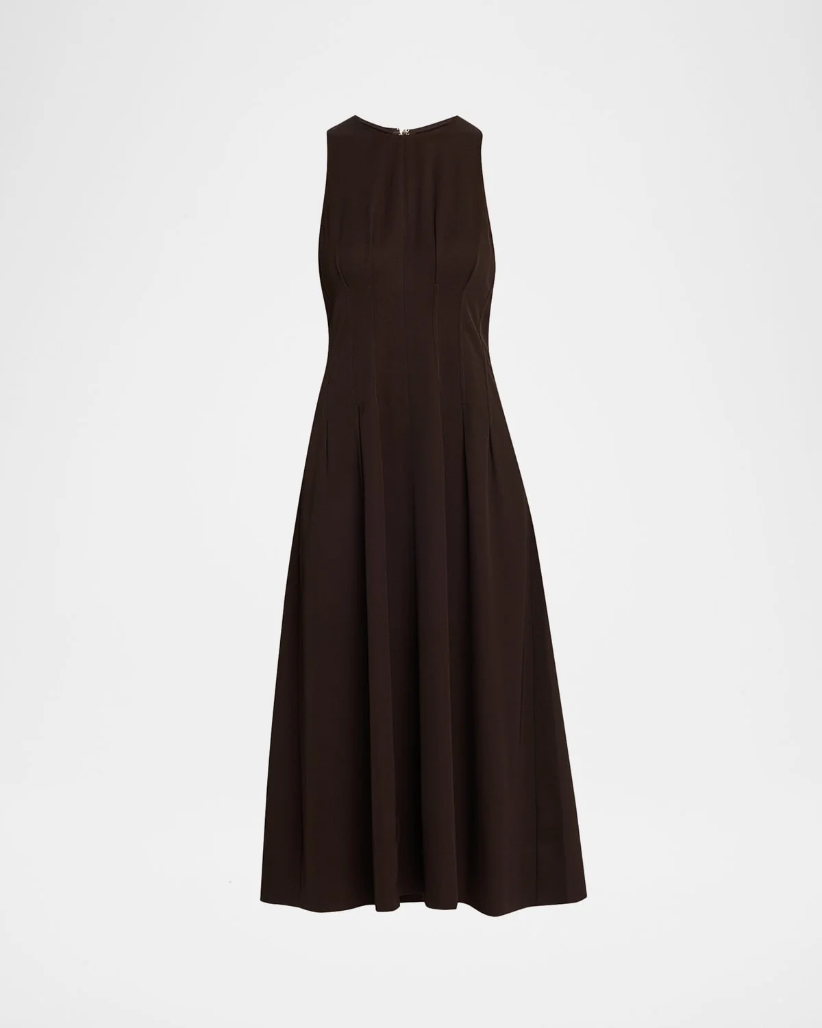 Crafted from merino wool twill, the "Bronwyn" maxi dress by Proenza Schouler is adorned with figure-flattering pintuck detailing to accentuate the waist. Crew neckline Sleeveless Side slip pockets & nbsp; A-line silhouette Hem falls below the knee Center back zip & nbsp; Acetate/wool Dry clean & nbsp; Imported