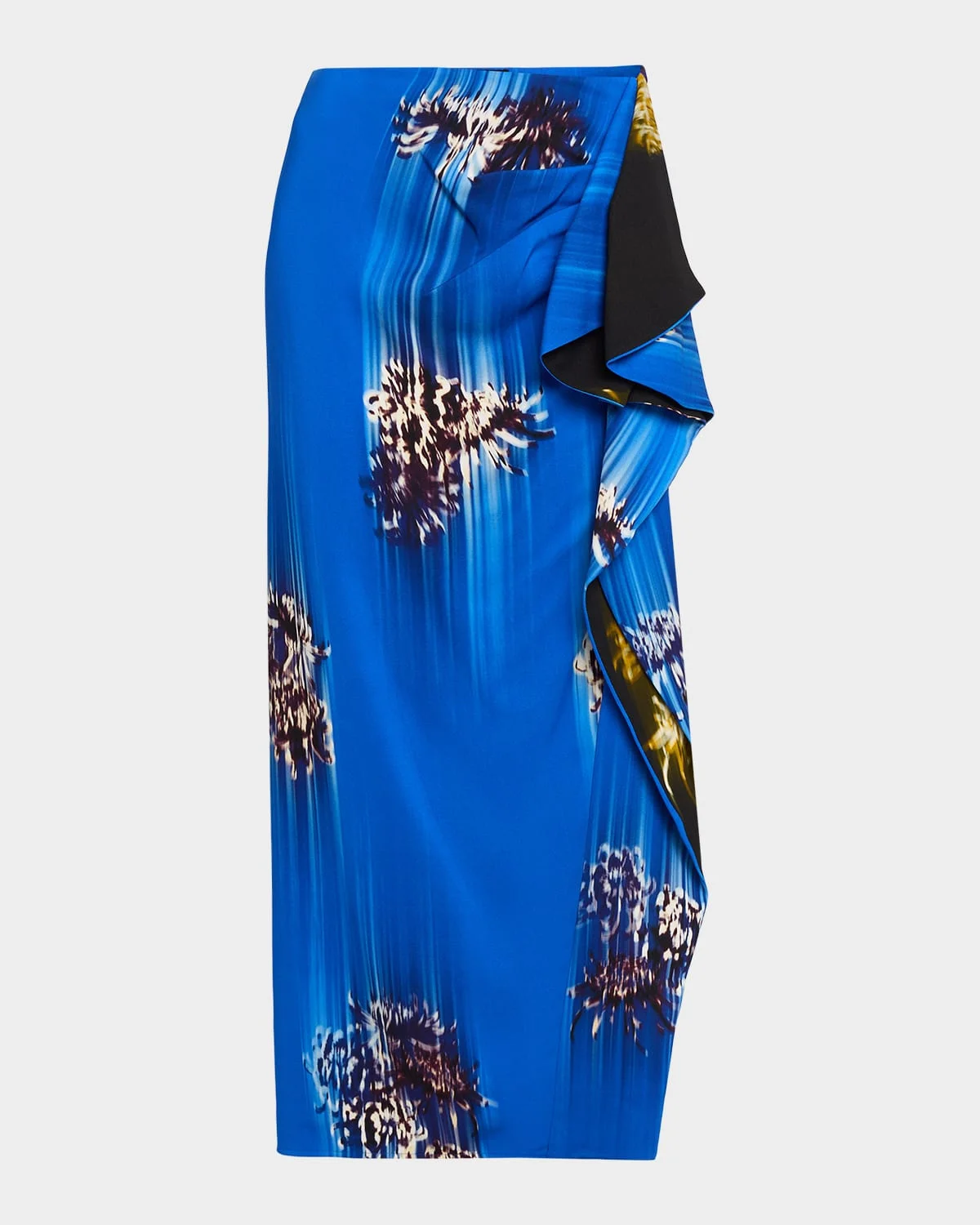 Crafted from matte double crepe, the "Cella" skirt by Proenza Schouler & nbsp;is decorated with a brushed chrysanthemum print and accented with cascading ruffles. Relaxed rise & nbsp; Slim, column silhouette Full length; thigh-high slit & nbsp; Invisible zip closure & nbsp; Acetate/polyester Dry clean Imported