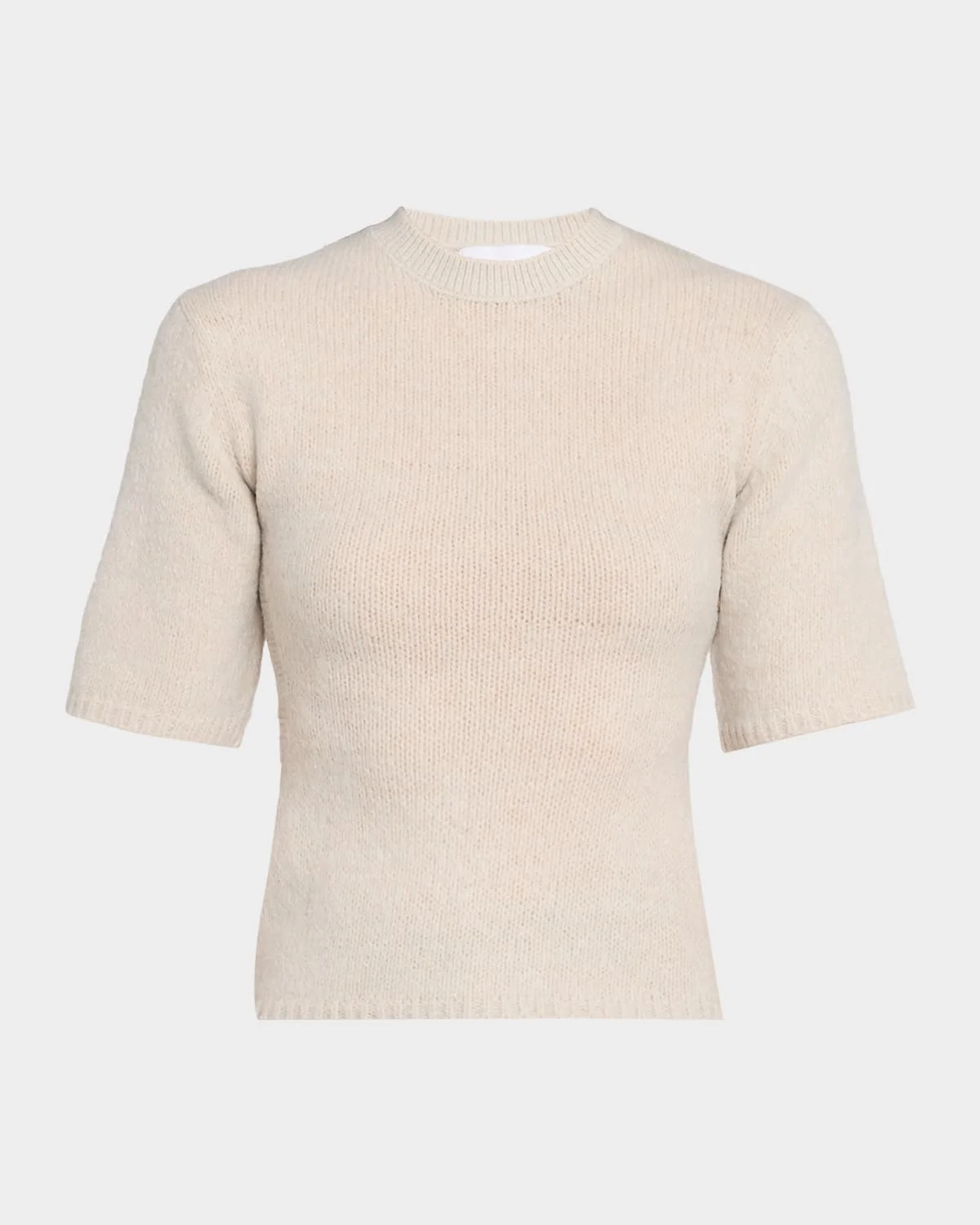Proenza Schouler "Dana" sweater crafted from an ultra-soft wool blend & nbsp; Crew neckline Dropped shoulders & nbsp; Short sleeves Cinched silhouette Hem sits at the hip Pullover style Nylon/polyamide/acrylic/wool Dry clean Imported SIZE & FITModel measurements: 5 & apos;10" tallModel is wearing a US size 4/Small