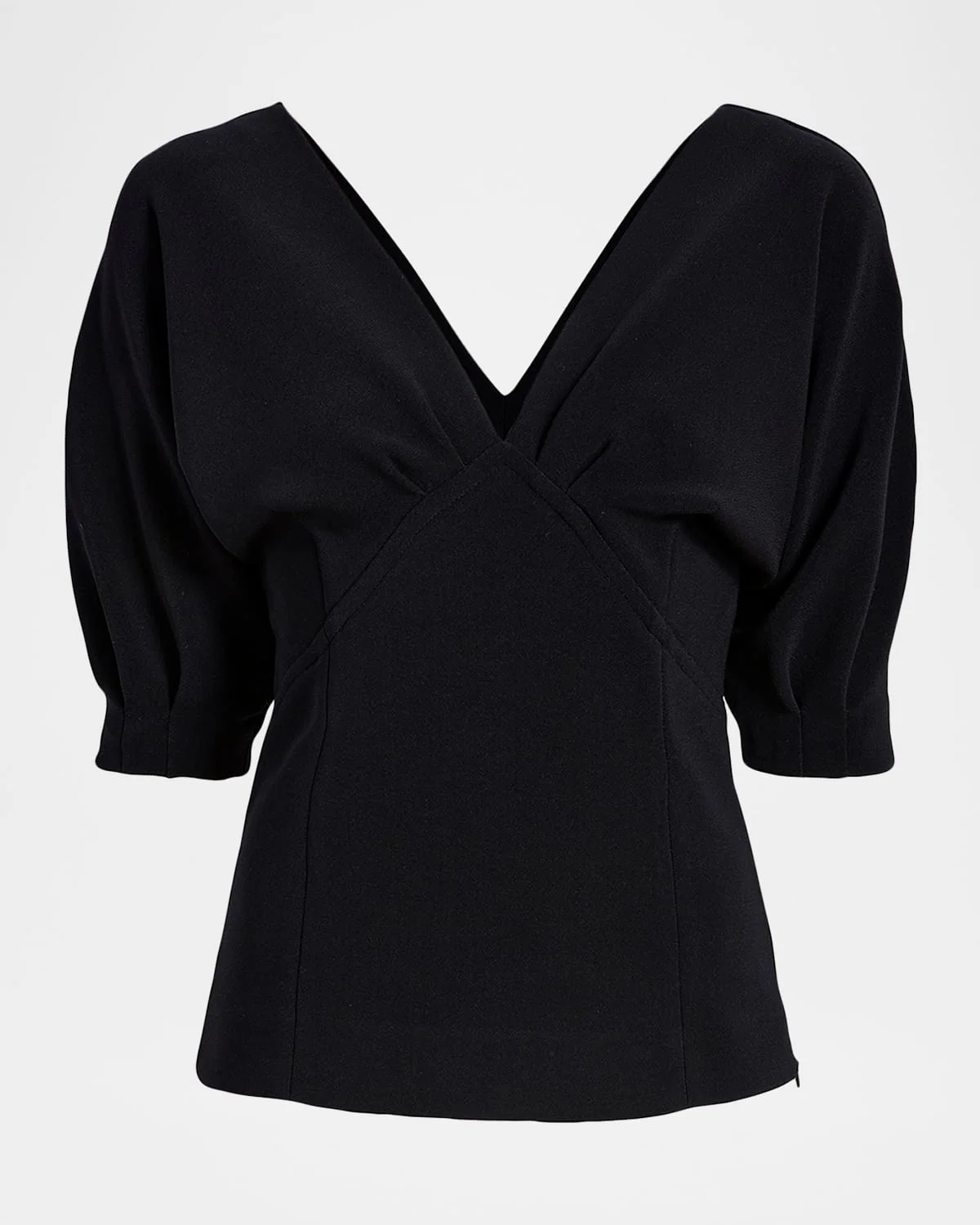 Crafted in compact stretchcrepe, the "Darena" top by Proenza Schouler is finished with gathered sleeves and a wide neckline. V neckline Short sleeves Classic fit Hem sits at the hip Pullover style Polyester/polyurethane Professional cleaning recommended Made in Portugal