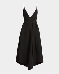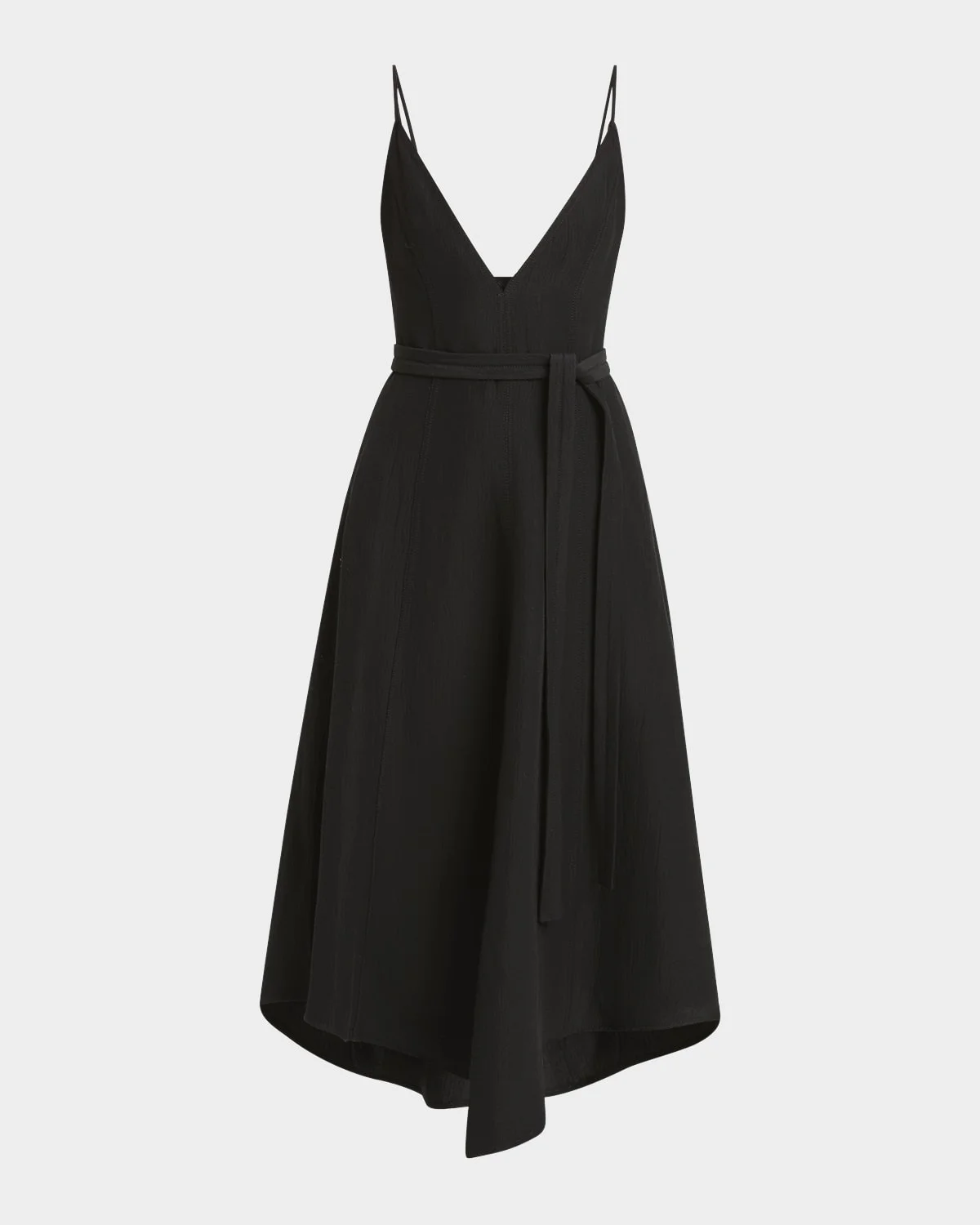 - Proenza Schouler "Elaine" linen-blend dress featuring princess darts, a self waist sash, and a curved hem - Plunging neckline - Sleeveless - Self-tie belted waist - Hem falls below the knee - A-line silhouette - Zip closure - Viscose/linen/cotton - Dry clean - Made in Italy