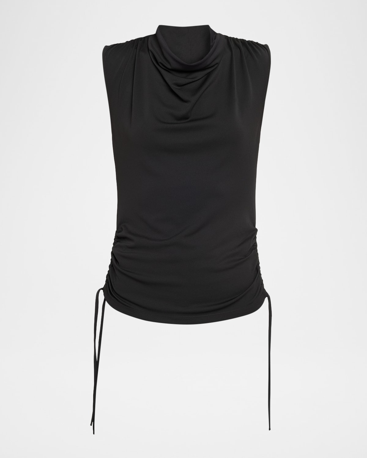 Crafted in matte stretch crepe, the "Elna" by Proenza Schouler features adjustable side ruching for a personalizable fit. High cowl neckline Sleeveless Classic fit Hem sits at the hip Pullover style Polyester/elastane Dry clean Imported
