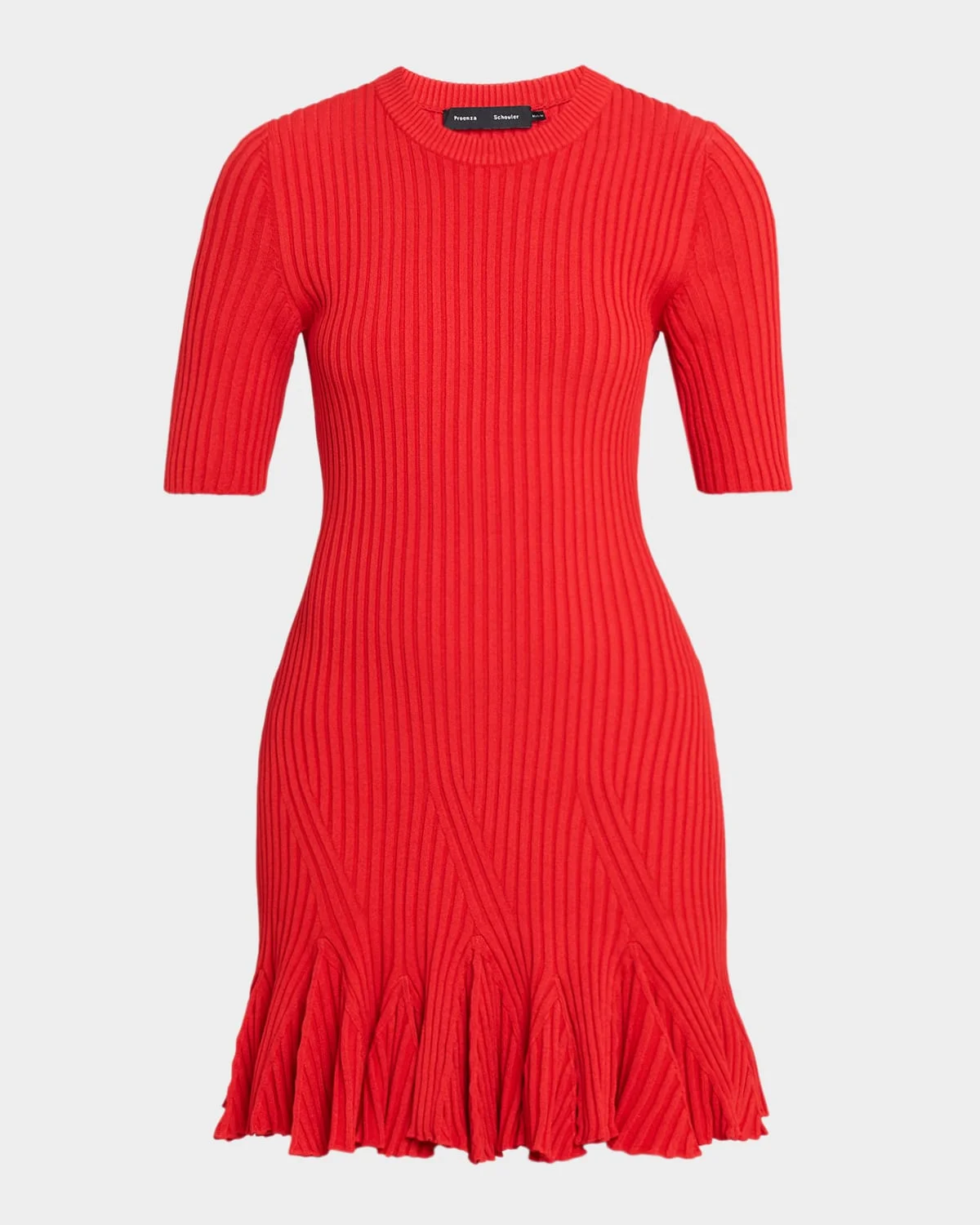 Crafted from wide ribbed knit, the "Leandra" from Proenza Schouler features a ruffle flounce hem Crew neckline Short sleeves Body-skimming silhouette Mid-thigh length Slipover style Viscose/nylon/polyamide Dry clean Imported