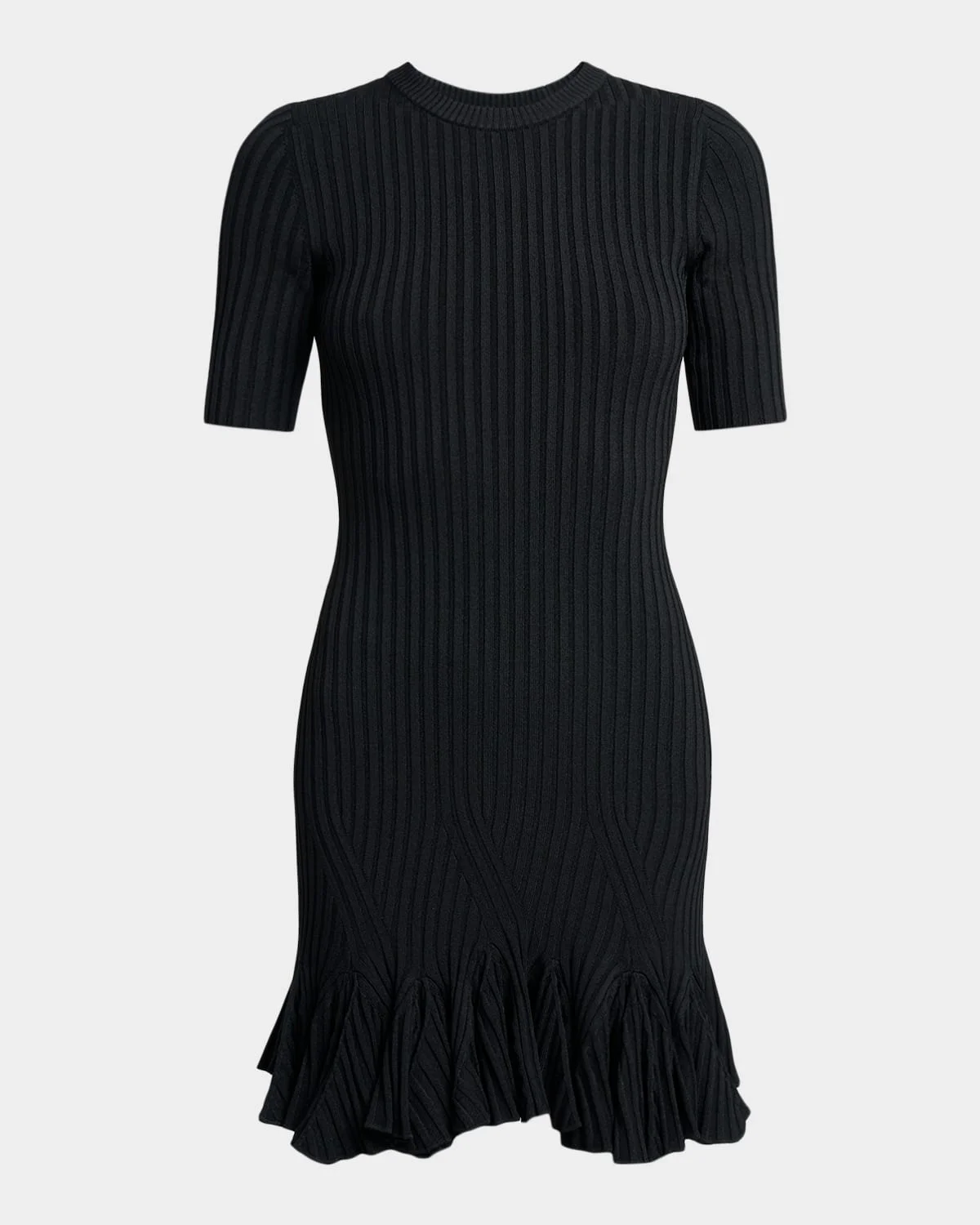 Crafted from wide ribbed knit, the "Leandra" from Proenza Schouler features a ruffle flounce hem Crew neckline Short sleeves Body-skimming silhouette Mid-thigh length Slipover style Viscose/nylon/polyamide Dry clean Imported