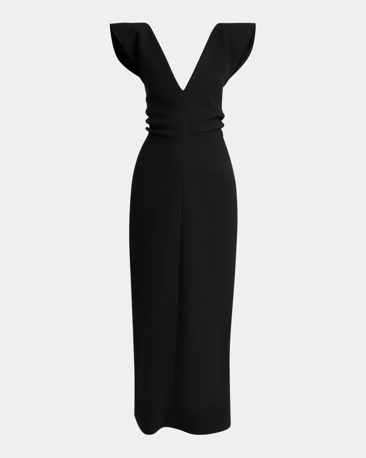 Crafted from structured wool scuba, the "Mariam" dress by Proenza Schouler is adorned with a plunging neckline and flared sleeves for a refined silhouette. V neckline Cap sleeves Silm silhouette Full length Center back zip & nbsp; Viscose/wool Dry clean Made in Poland