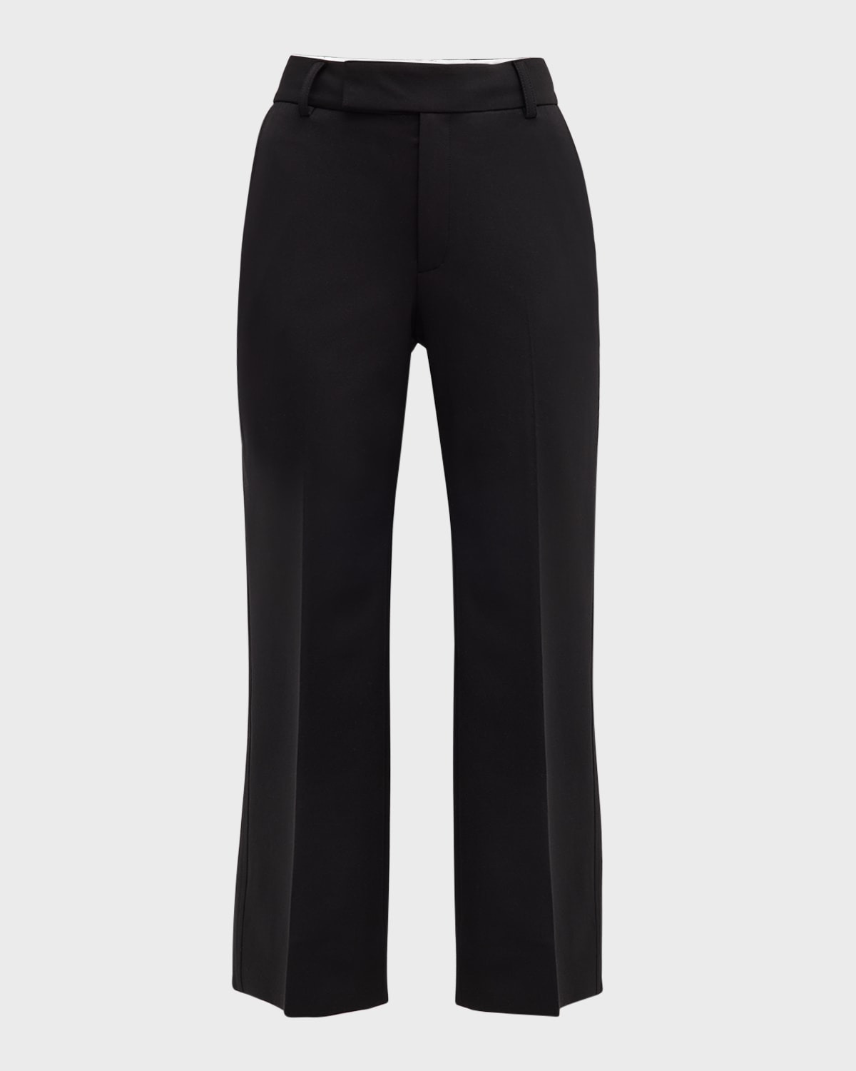 Proenza Schouler "Marlene" kickflare pants In tropical wool Midrise; sits high on hip Hook/zip fly; belt loops Side slip pockets; back welt pockets Bootcut; Cropped fit Virgin wool/nylon/polyamide/elastane Unlined Dry clean Made in Poland
