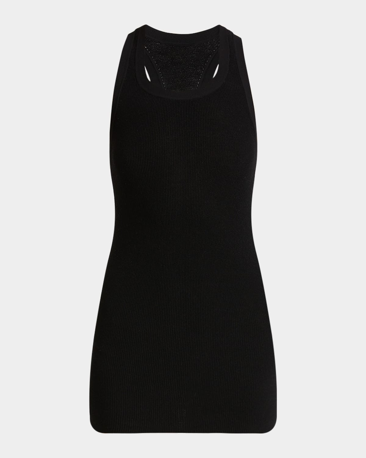 Proenza Schouler matte viscose ribbed knit tank top Scoop neckline Sleeveless Ribbed trim Midlength Fitted silhouette Pullover style Viscose/polyester Professional cleaning recommended Imported
