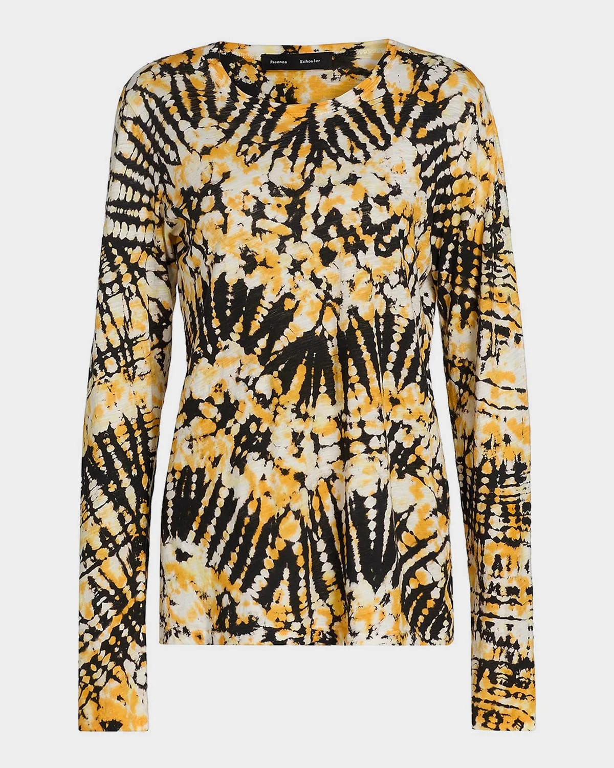 Proenza Schouler "Mia" soft jersey top adorned with a tie-dye motif & nbsp; Crew neckline Long sleeves Relaxed fit Hem falls to the hip Pullover style & nbsp; Cotton Dry clean Made in USA