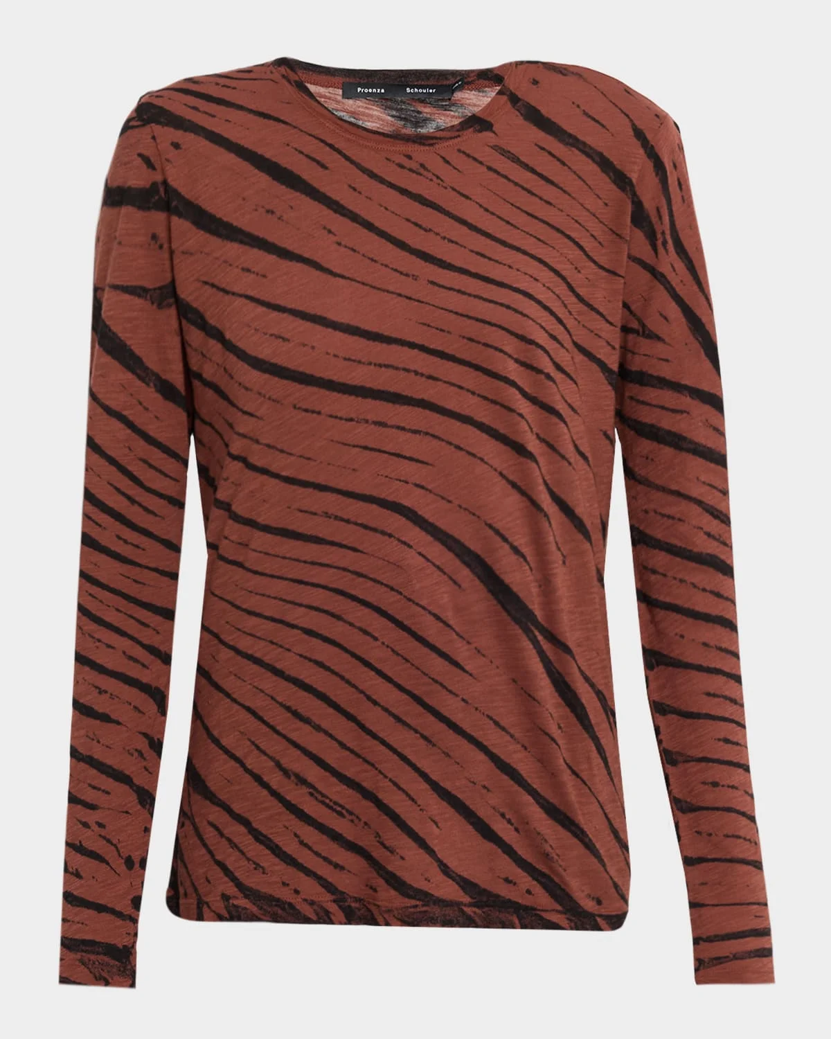 - Proenza Schouler tissue jersey T-shirt featuring a tie-dye print - Crew neckline - Long sleeves - Relaxed fit - Pullover style - Cotton - Unlined - Made in USA
